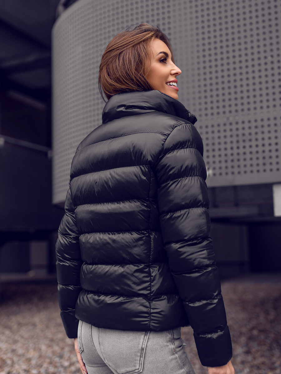 Black women's quilted winter jacket 23061 from the Bolf collection - perfect on cold days. A characteristic feature of the jacket is horizontal quilting on its entire surface. A simple cut, stand-up collar and cuffs on the sleeves give it a sporty look. The jacket has two practical side pockets with zippers. The product consists of 100% nylon, making it flexible and comfortable, you can adjust it to any figure. The timeless cut means that the jacket can serve you for many seasons. The variety of colors allows it to be matched to many styles. A winter jacket is perfect for sports stylizations, in which it will perfectly match sweatpants and a T-shirt. It will perfectly match with jeans or leggings.