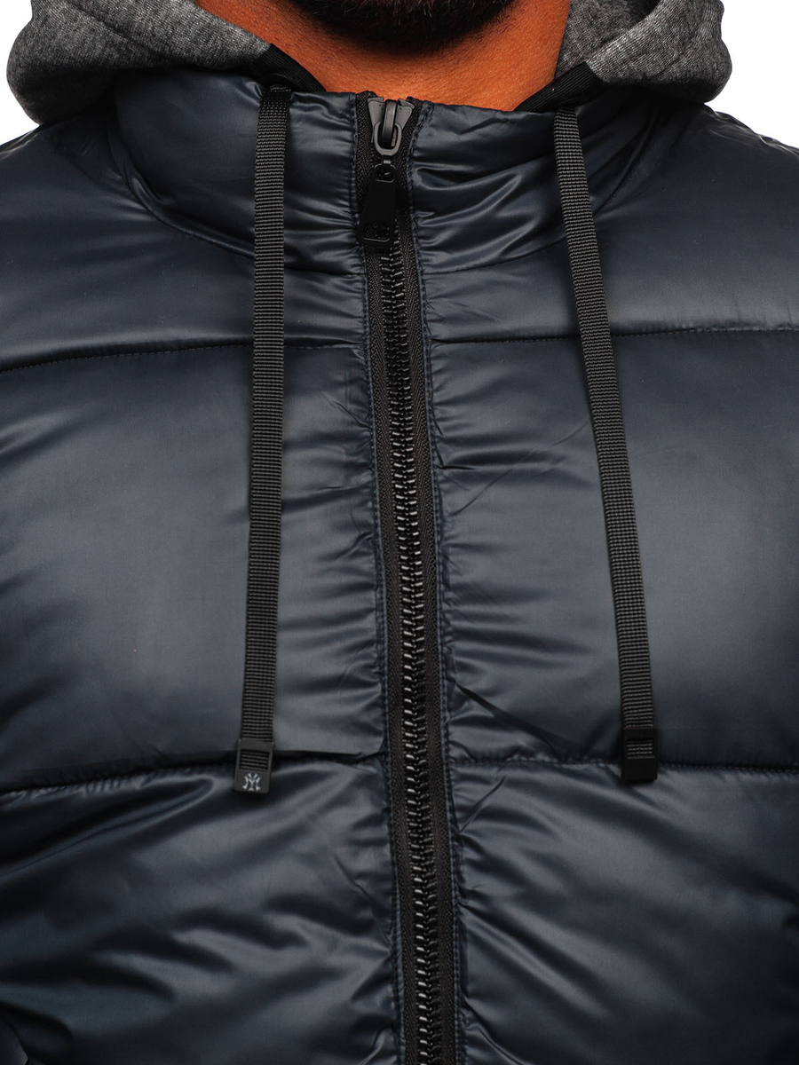 Stylish graphite men's quilted winter jacket B2906 from the Bolf collection. It is equipped with zip-fastening. The sleeves and the bottom are finished with a welt, thanks to which the jacket fits perfectly to the figure and protects against the cold. It has a stand-up collar and a detachable hood, thanks to which you will protect yourself from wind and rain. The fitted and simple cut makes everyone look exceptionally advantageous in it. The jacket has three practical pockets. Two outer pockets with zippers and one inner pocket. The jacket is made of high-quality materials, which makes it very comfortable and pleasant to the touch. Consists of 100% nylon. Thanks to its versatility, the product can be combined with many styles. Perfect for a walk, meeting with friends or a trip to the city. This jacket will make the perfect combination with chinos and a long sleeve top.