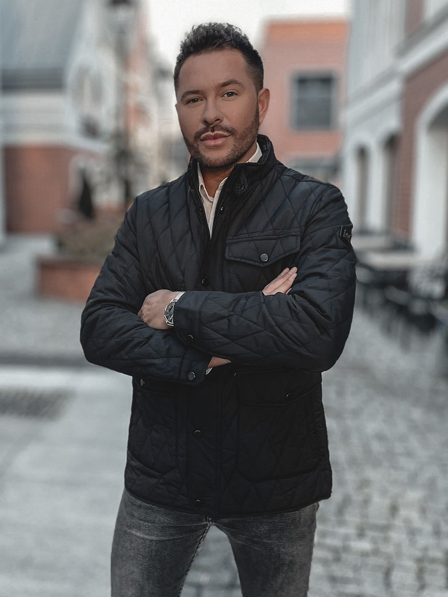 Classic black men's quilted lightweight jacket 22M19 from the Bolf collection. It is fastened with a zipper and press studs. It has four pockets. Chest pocket, fastened with press studs, one inside pocket without fasteners and two outside pockets with press studs. A jacket with a classic, simple cut, which character is given by fashionable quilting. The versatility of the jacket allows for its extraordinary use in sports and casual outfits. Perfect for everyday duties, such as shopping or morning jogging. The main advantage of the jacket is its lightness and comfort to wear. Create your own unique style by combining a jacket with chions and a long sleeve top.