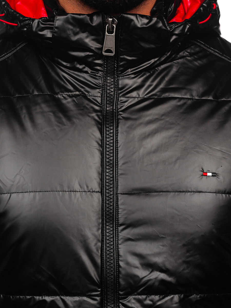 Eye-catching black men's lightweight quilted sport jacket 2137 from the Bolf collection. The jacket is fastened with a zipper, has a stand-up collar and a detachable hood. It has two side zippered pockets, a decorative pocket on the sleeve and one inner pocket, fastened with a button. Sleeves finished with a welt and adjustable with a nap, make the jacket look stylish and classic. It is made of 100% polyester. Thanks to its versatility, the product can be combined with many styles. Perfect for applying during any activities - training, long autumn-winter walks or trips to the mountains. It looks great with jeans or joggers and a long sleeve top.