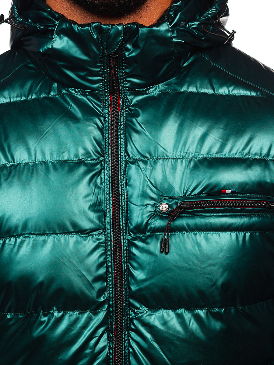 Superb green men's quilted lightweight sport jacket 2147 from the Bolf collection. A warm jacket, fastened with a zipper, will complement every man's wardrobe. The product has a stand-up collar and a snap-fastened hood with 2D adjustment. The jacket has very practical pockets, two side pockets and one chest pocket with a zipper. In addition, it has two internal pockets, one of which is closed with a zipper and the other with velcro. It is made of 100% polyester. Thanks to its versatility, the product can be combined with many styles. It is intended for fans of a sporty style. It is perfect for training, a long autumn-winter walk, a trip to the city or a trip to the mountains. Ideally suited for the transitional season, spring and autumn. The subdued color makes the jacket a perfect match for lighter and darker outfits. You can also wear it to meet your friends, they will be delighted with your styling, complemented by a fashionable jacket. Create a perfect match with chinos and sweatpants.