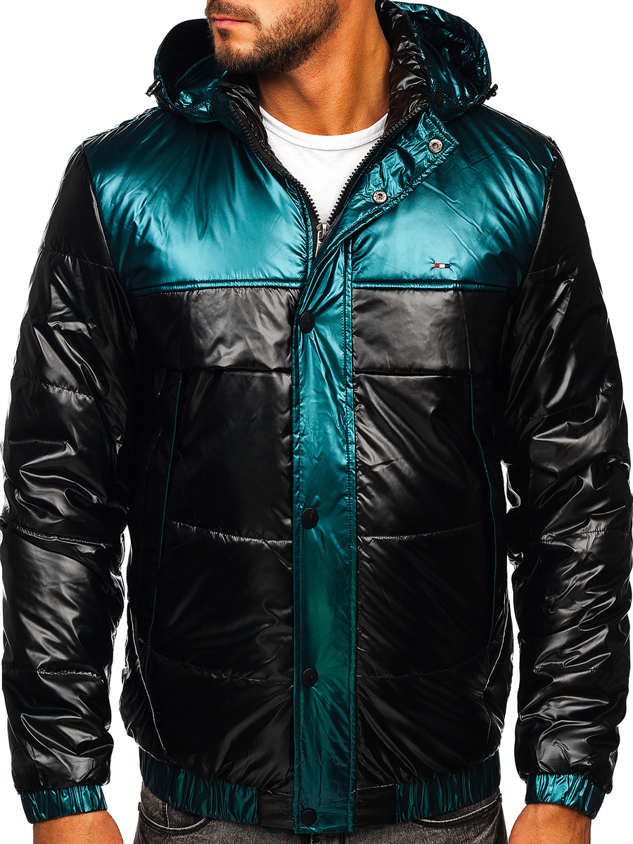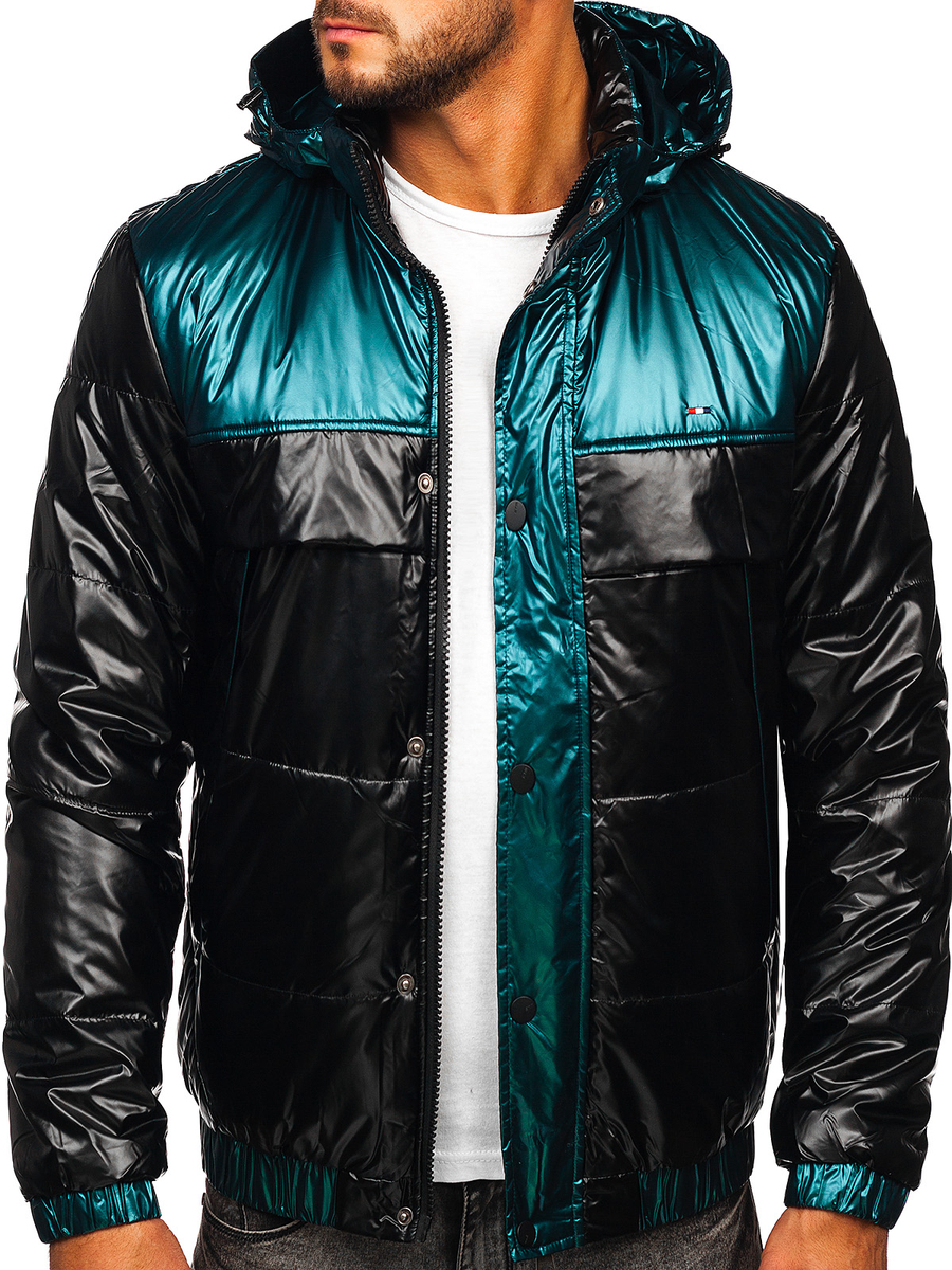 Perfect black men's quilted lightweight sports jacket 2145 from the Bolf collection. It is fastened with a zipper and press studs, has a stand-up collar and an adjustable hood, which has an additional fastening with press studs. There are practically three pockets in the jacket. Two side pockets without fastening, and one inside pocket, fastened with a button. The bottom and sleeves finished with a welt make the jacket look stylish. It is made of 100% polyester. Transitional jacket is intended for fans of sporty style. It is perfect for training, a long autumn / winter walk or a trip to the mountains. Perfect for sweatpants, jeans and a t-shirt.