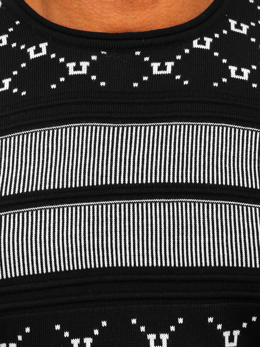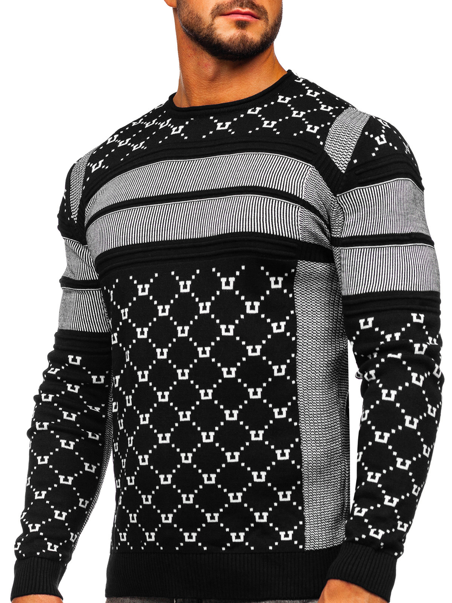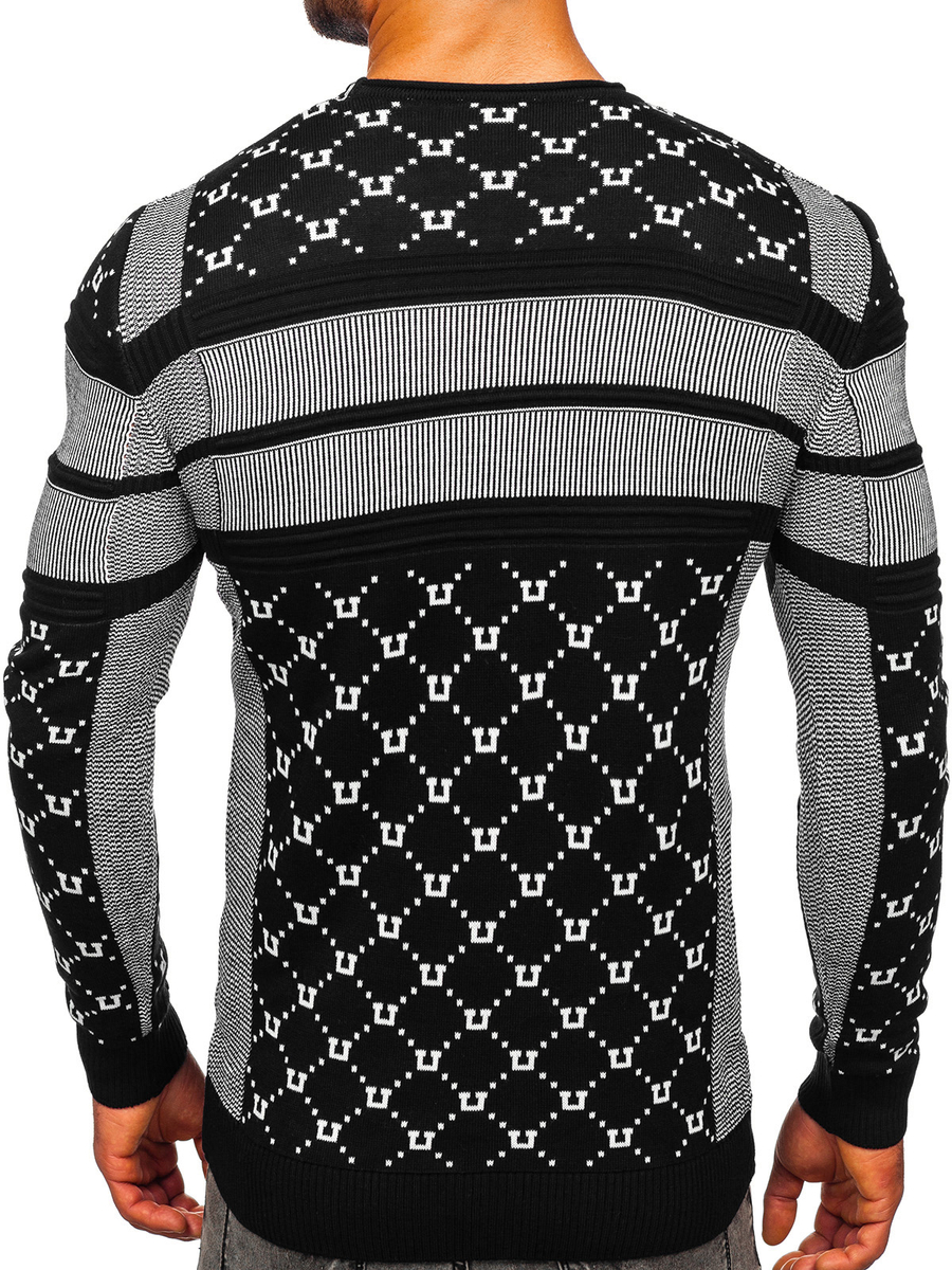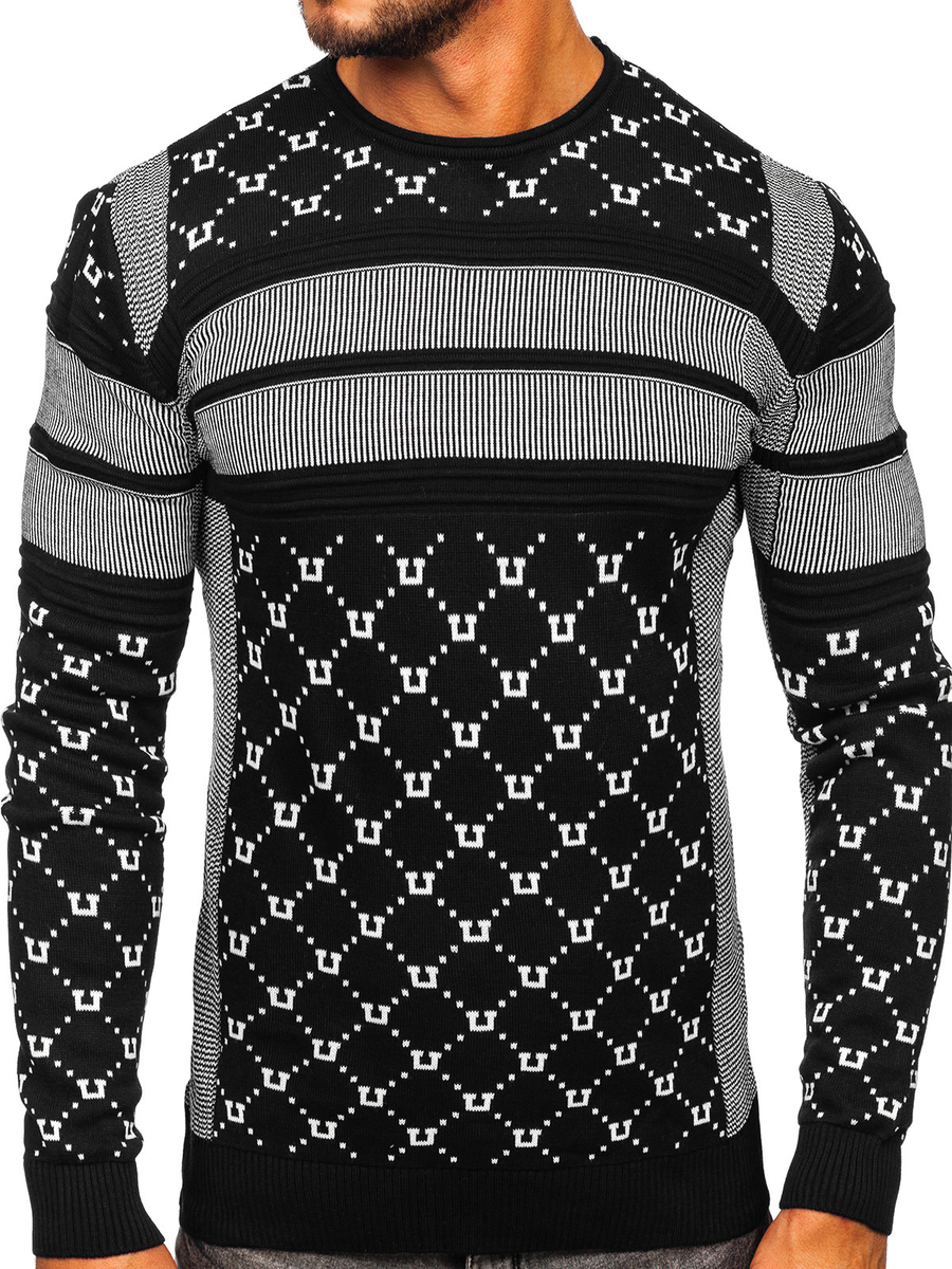 Classic black men's jumper 1059 from the Bolf collection. The product has a round neckline, which is finished with a welt. The ribbing is also finished at the bottom and sleeves, thanks to which the sweater fits every figure. It is made of a delicate, pleasant to the touch fabric that fits perfectly on the body. The material is 50% wool and 50% acrylic. This product model is available in three subdued colors, so you can match it to any styling. Wear it to work, school, cinema, for a walk or meeting with friends. A classic sweater will go great with jeans and a leather jacket, creating the perfect outfit for a city trip. You can pair it with joggers and a sweatshirt for a looser look.