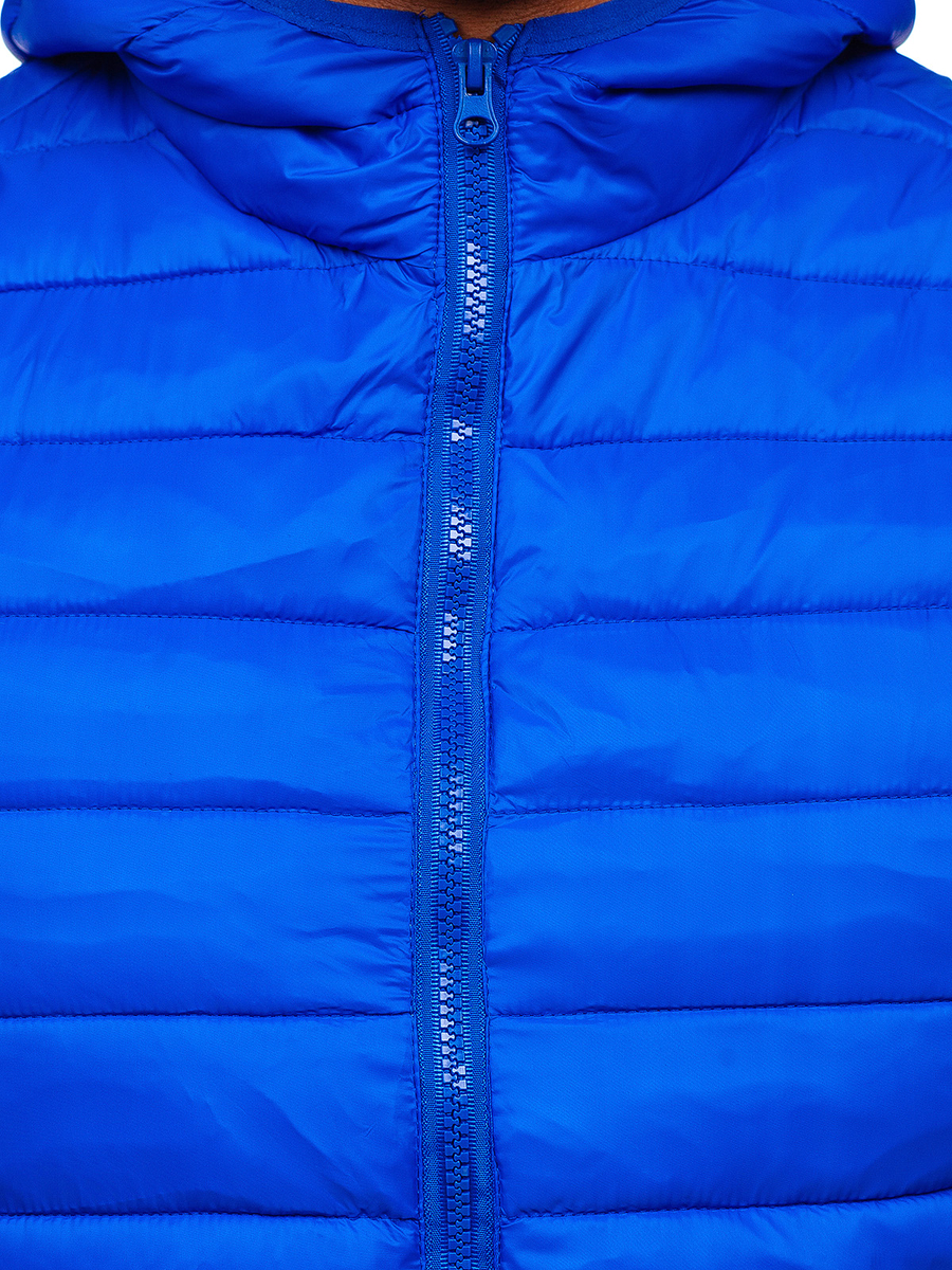 Great cobalt men's quilted hooded gilet LY36 from the Bolf collection. It comes in five colors, which gives you the opportunity to compose your dream style. The quilted vest is fastened with a zipper. Stand-up collar, connected to the hood, will protect you from wind and cold. The vest has two practical outer pockets with zippers, in which you can safely store your phone, wallet and documents. The bottom of the vest, the hood and the armholes are finished with an elastic trimming, which makes the vest fit to every figure. Dedicated, among others, to people who like to actively spend time outdoors. You can use it while jogging or walking. By combining a vest with a long sleeve top and jeans, you will get a casual outfit for a trip to the city or going out with friends. It will also be perfect in combination with a sweatshirt and cargo pants.
