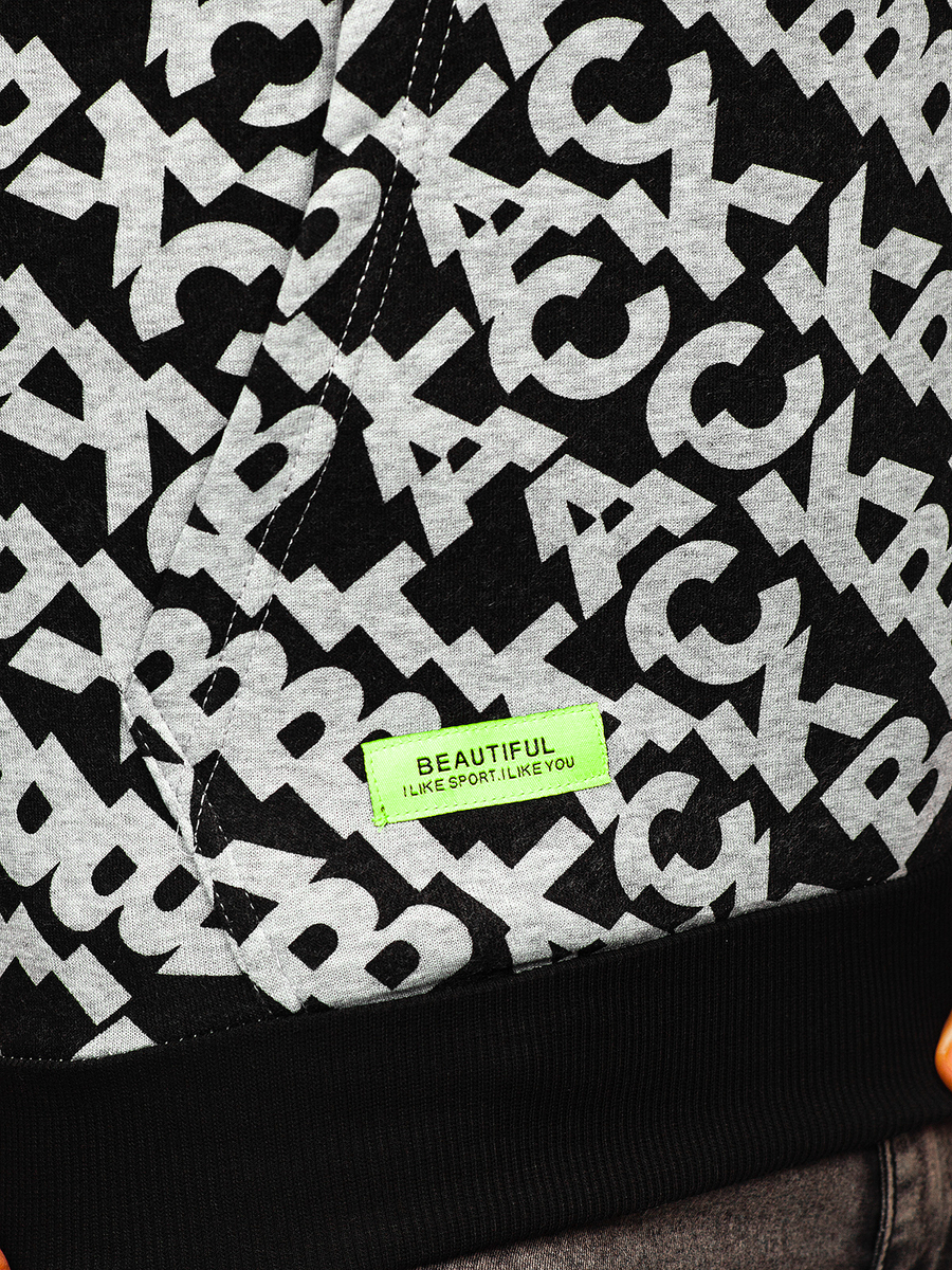 Superb black and grey men's printed hoodie HW2320 from the Bolf collection. The sweatshirt has a two-layer drawstring hood and a practical and fashionable kangaroo pocket. The sleeves and the bottom are finished with a welt that provides protection against the cold. It is made of 65% cotton and 35% polyester, which makes it very pleasant to the touch. This model is distinguished by original, decorative prints and is available in two unique color versions. A hoodie will work at any time of the year and in all circumstances. Put it on during sports activities, a walk or a city trip. For a meeting with friends, it will be a perfect match with jeans and a leather jacket. Combine it with sweatpants and a lightweight jacket for a sporty look.