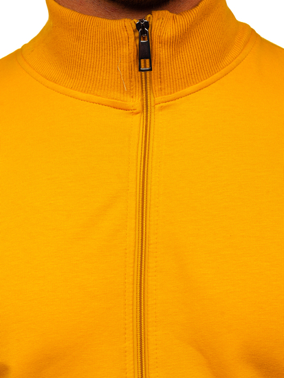 Fantastic yellow men's sweatshirt with a stand up collar and zipper 8756 from the Bolf collection. It is a sweatshirt with a classic cut, fastened with a zipper with a stand-up collar. The bottom and sleeves of the sweatshirt are finished with a welt, which provides warmth and protection against wind. The sweatshirt has two side pockets without fastening. It is available in several different color versions. Thanks to a wide range of colors, you will not only choose something for yourself, but also match the sweatshirt to your styling every day. It is made of a very pleasant to the touch material. The decorative element are prints on the sleeves. It will be perfect for a walk, shopping or a trip out of town with friends. You can also use it during training. It also fits perfectly with sweatpants, especially during hard training or running outdoors. Casual, the sweatshirt will look great with our joggers and a T-shirt.