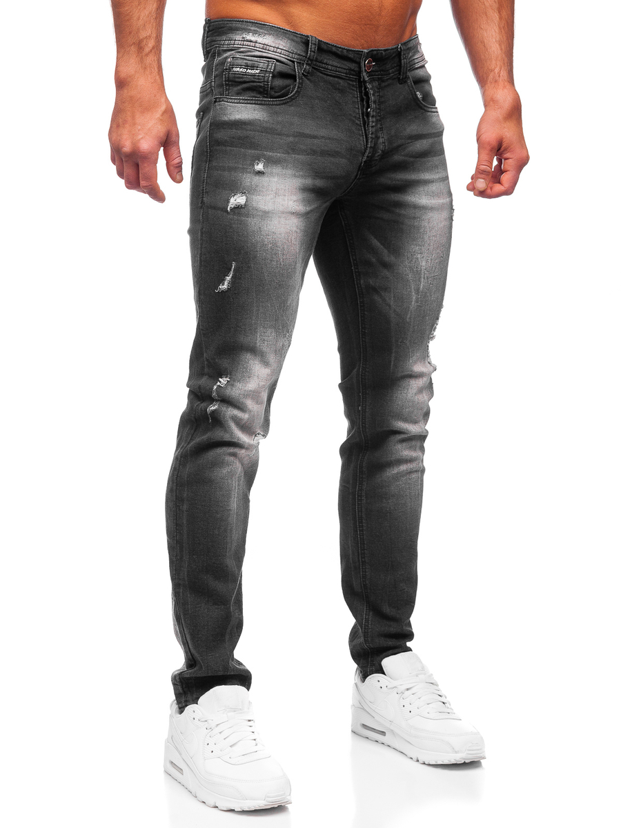 Great black men's regular fit jeans MP010N from the Bolf collection. The pants have very practical pockets, two at the front, two at the back and a small pocket at the front. Fashionable abrasions on the legs and shading give them a unique look. The product is made of 85% cotton, 12% polyester, 2% viscose and 1% elastane. Denim pants are a universal base for building everyday stylizations. You can wear them while walking, shopping, at work or when out with friends. Perfect for a T-shirt, alightweight jacket or a leather jacket. You can easily create an original sport and casual look.
