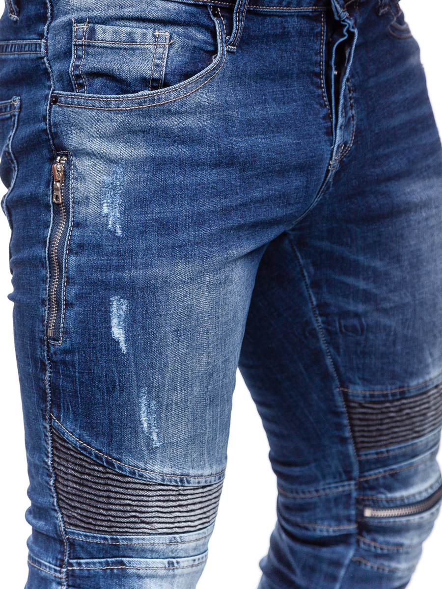 Great navy blue men's slim fit jeans MP007BS from the Bolf collection. The pants have very practical pockets, two at the front, two at the back and a small pocket at the front. Fashionable abrasions on the legs and shading give them a unique look. Thanks to decorative applications on the legs and imitation of side pockets with a zipper, you will stand out from the crowd. The product is made of 67% cotton, 29% polyester, 3% viscose and 1% elastane. Denim pants are a universal base for building everyday stylizations. You can wear them while walking, shopping, at work or when out with friends. Perfect for a T-shirt, alightweight jacket or a leather jacket. You can easily create an original sport and casual look.