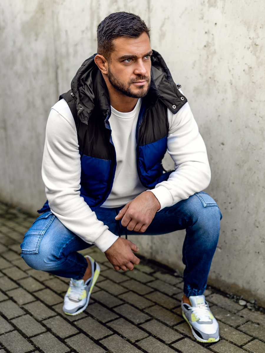 Superb navy blue men's quilted gilet with a hood 1189 from the Bolf collection. The vest includes a detachable hood that protects against getting wet on rainy days. The product is fastened with a convenient, zipper. The vest has a stand-up collar. A big advantage of the product are three zippered pockets. Two spacious outer pockets can act as protection for your hands against frost on cold days. The inner pocket is perfect for storing keys, phone, documents or other small items. The hood has strings that allow it to be adjusted. This makes it an excellent protection against cold and rain.The vest is intended for every active man who is in favor of a sporty style. The product will be perfect for unfavorable weather conditions. It will be perfect for keeping warm during weekend trips, long evening walks or jogging in the forest or park. You will feel very comfortable during hiking or long, demanding runs. The flexibility of the material makes the product perfectly adapted to poor conditions and high physical activity. The elegant cut will make you look stylish and fashionable during weekend getaways with friends or family. The product is available in several other colors, so you can match the vest to many outfits and styles. The product can be combined with jeans, joggers and a long sleeve top. Match it also with a shirt or a sweater. This product is a must have in the wardrobe of every man, thanks to its versatility, it can be used on many occasions, both sports and social. The vest is made of 100% polyester, which is a material that will ensure comfort during everyday use of the product. Thanks to the excellent price-quality ratio, the product will be perfect as a birthday or Christmas gift. It will satisfy even the most demanding men.