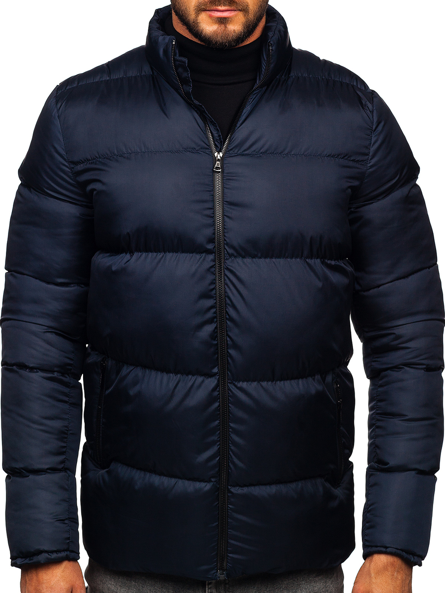 Stylish navy blue men's quilted winter jacket 0025 from the Bolf collection. It is equipped with zip-fastening. The fitted and simple cut makes everyone look exceptionally advantageous in it. The jacket has two outer pockets with zippers and an inner pocket without fastening. The jacket is made of high-quality materials, which makes it very comfortable and pleasant to the touch. Thanks to its versatility, the product can be combined with many styles. Perfect for a walk, meeting with friends or a trip to the city. This jacket will make the perfect combination with our jeans, a T-shirt and a sweatshirt.