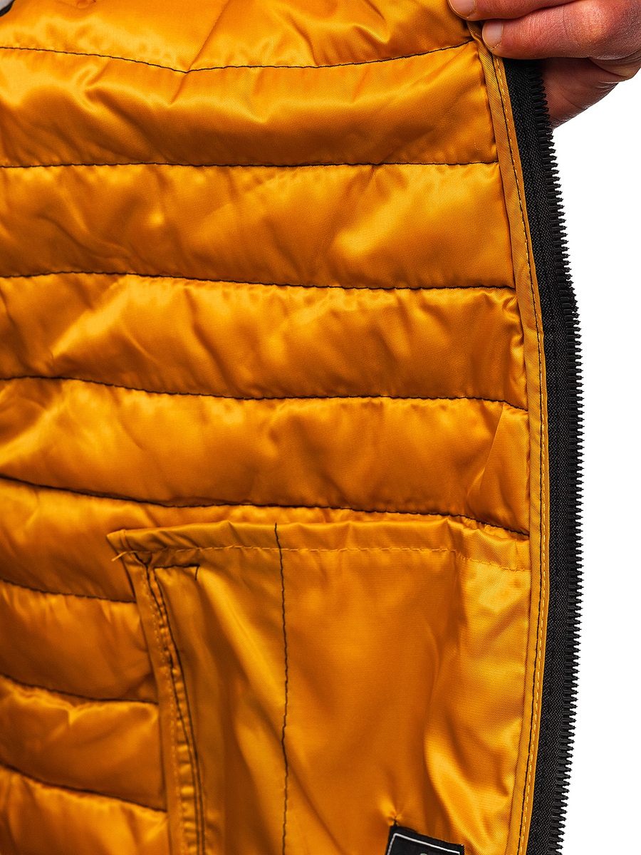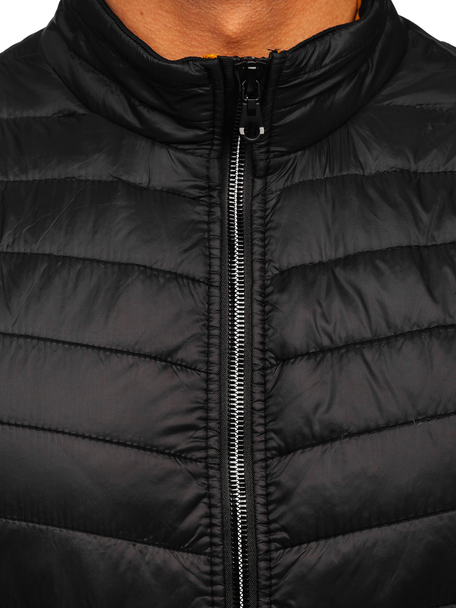 Fantastic black men's quilted gilet 7103 from the Bolf collection. The vest is fastened with a zipper and has a stand-up collar. It has two outer pockets with zippers and two inner pockets without fastening, in which you can safely hide the most necessary things. The bottom and armholes are finished with an elastic trim. The vest is available in several colors, it has a sporty, simple cut. Perfect for everyday trips to the city, meetings with friends or an evening walk. In combination with a long sleeve top and joggers you get an outfit style. It also works great with a sweatshirt and jeans.