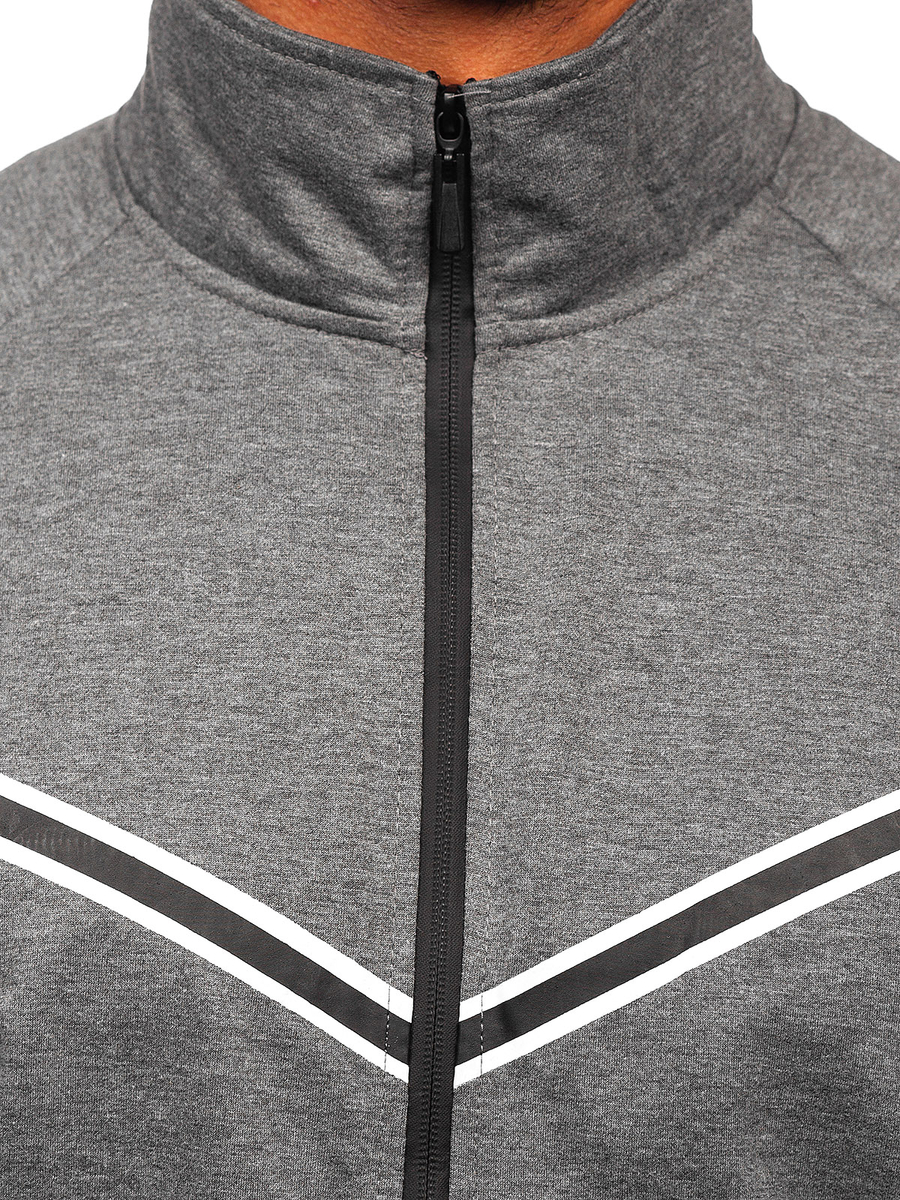 Great graphite men's zip sweatshirt B062 from the Bolf collection. The sweatshirt is available in three fashionable colors, it is fastened with a zipper and has a stand-up collar. Thanks to the ending of the bottom and sleeves with a welt, the sweatshirt fits perfectly to the figure. An additional element are two outer pockets with zippers, which give it a practical character. It is a product that allows you to create many unusual styles. The highest quality materials, 75% cotton and 25% polyester, will keep you comfortable every day. Combine it with a T-shirt, joggers and a leather jacket for a timeless look. It will be perfect in combination with sweatpants, creating a sports outfit.
