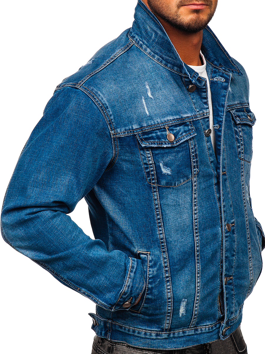Classic blue men's denim jacket MJ500B from the Bolf collection. This model is available in three fashionable and universal colors. The jacket and sleeves are buttoned. It has four practical pockets, two chest pockets with a button and two pockets without fastening. Thanks to shades with fashionable abrasions, the jacket takes on a unique, timeless style that will never go out of fashion. Combine a jacket with joggers and a T-shirt for the perfect outfit for a meeting with friends.