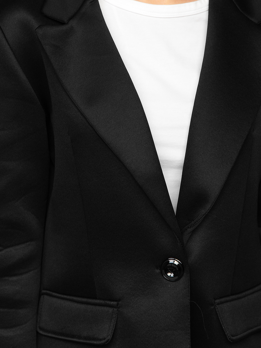 Black women's short coat 20672 from the Bolf collection - perfect on cold days. A short, buttoned coat will add style to any styling. A fashionable look is given by the imitation of side pockets covered with a flap and a reverse collar. It is a unique coat with a simple cut, with a semi-elegant character. The product consists of the highest quality materials, which makes it flexible and comfortable. The timeless cut means that the coat can serve you for many seasons. It is suitable both for everyday wear and for more formal occasions. It will look stunning in combination with a dress!
