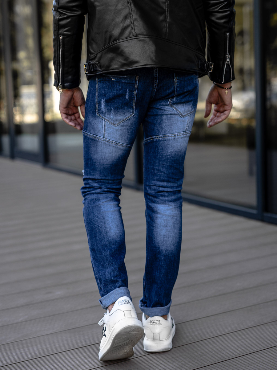 Perfect blue men's regular fit jeans MP0050B from the Bolf collection. Jeans are fastened with buttons. This model has two pockets at the front and two at the back. There is one more decorative pocket at the front. They are made of the highest quality material, which makes them unique and pleasant to the touch. Jeans are comfortable and fit perfectly to any figure, they are one of the most popular styles of pants. Fashionable shading and abrasions on the legs add to their character, they always look good! Best in combination with a sweatshirt, a T-shirt or a shirt.