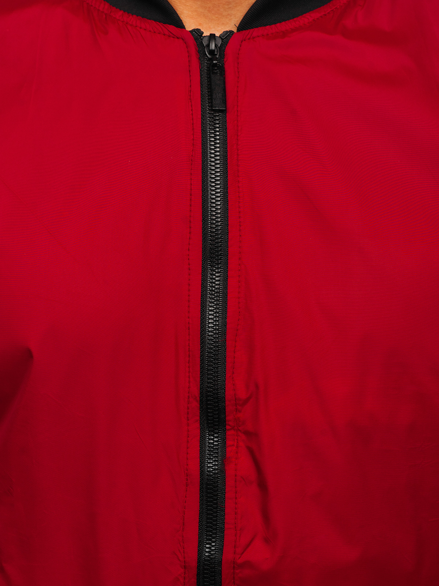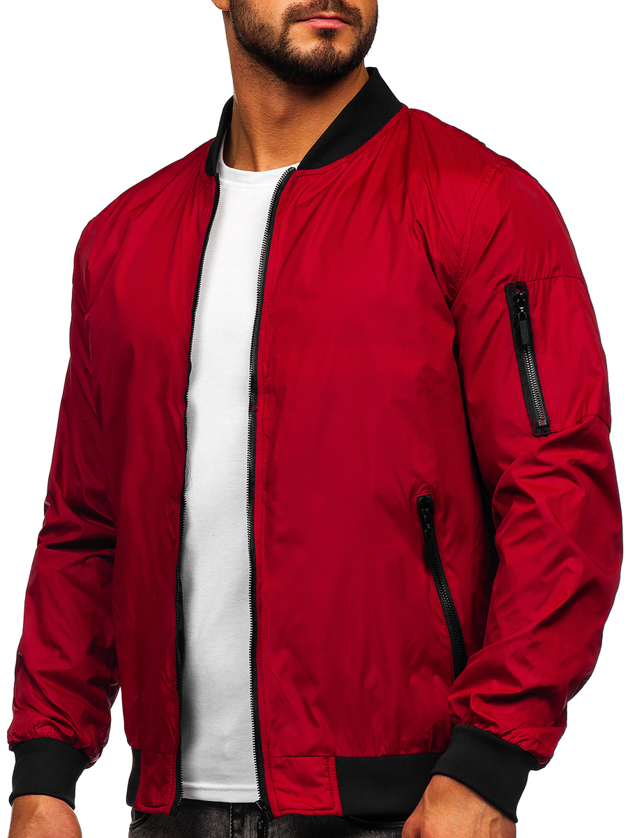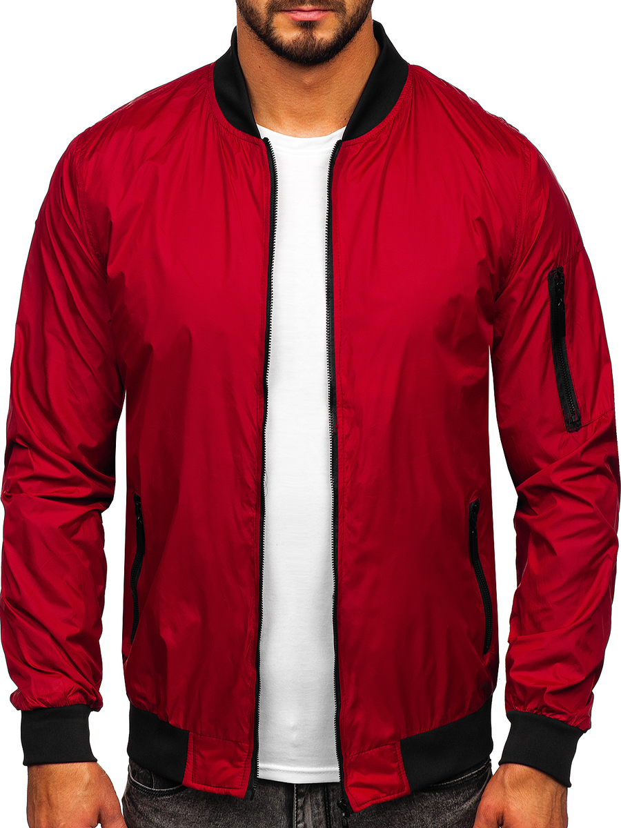 Classic claret men's lightweight bomber jacket 5M708 from the Bolf collection. It comes in fashionable and universal colors. The jacket is fastened with a zipper and a stand-up collar with a welt. The sleeves and the bottom are finished with a welt, thanks to which the jacket fits perfectly to the body. The jacket has practical pockets. Two outer pockets with zippers, a pocket on the left sleeve with a zipper and an inner pocket without fastening. A bomber jacket will be perfect for both everyday and sports stylizations. Are you looking for a training style? Compose your sporty look with a T-shirt, a sweatshirt and sweatpants.
