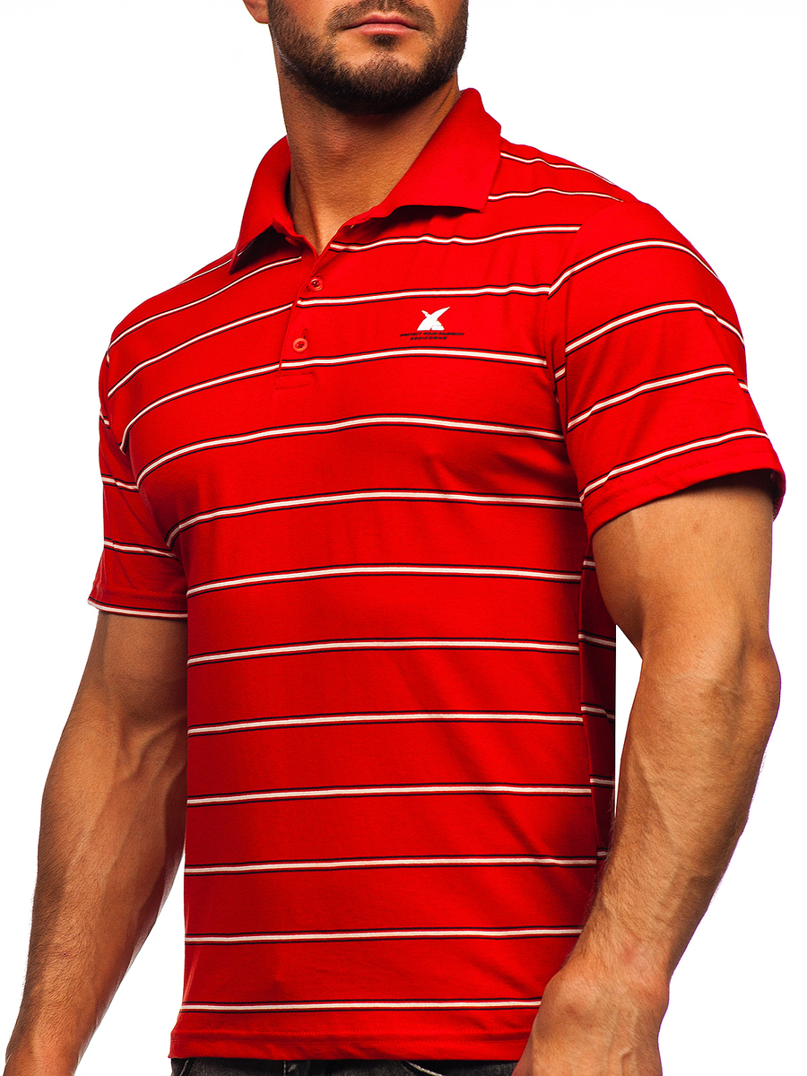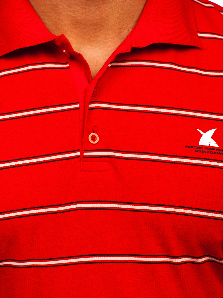 Classic red men's polo shirt 14954 from the Bolf collection. Thanks to a wide range of colors, you can match the T-shirt to any styling. The polo shirt is printed entirely with a fashionable striped pattern. It is a classic polo shirt with a simple cut that fits perfectly to any figure. The product is made of 100% cotton, it provides the highest wearing comfort regardless of the circumstances. Wear a fashionable polo shirt for a meeting with friends, a family outing or a date. Combine it with our chinos. It is also perfect for looser styling with jeans and a leather jacket.