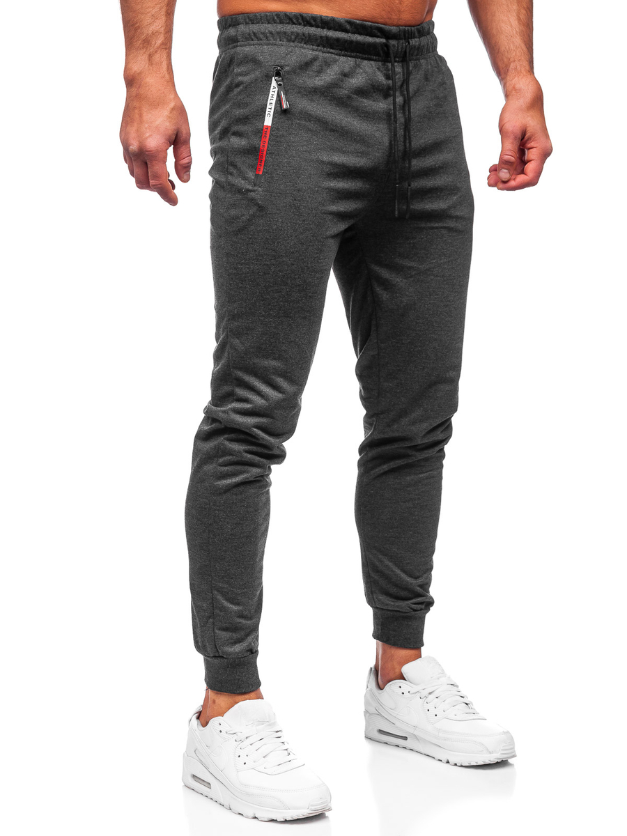 Great graphite men's sweatpants JX5007 from the Bolf collection. Sweatpants are adjustable at the waist with a strong welt and drawstring. They are made of 65% cotton, 30% polyester and 5% elastane, which makes them extremely comfortable. A functional and practical element are two side pockets with zippers, thanks to which you can have the most necessary things with you. The legs are finished with welts, perfectly adjusting to the body. Pants will make you look special during a trip to the city or training. You can create the perfect sports outfit by matching them with a T-shirt, a sweatshirt and a sports jacket!
