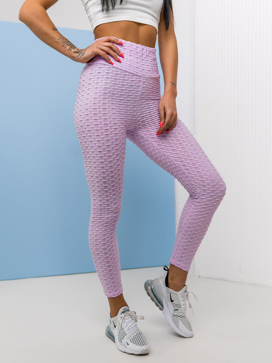 Fantastic light violet women's leggings YW88024 from the Bolf collection. Basic leggings will suit every woman's taste. They are regulated at the waist with a strong welt, which makes them fit perfectly to the figure and emphasize it. This model is decorated with a convex pattern on the entire surface, which adds character and uniqueness to it. Thanks to its versatility, leggings can be worn at any time of the year and for almost any occasion! They can be dressed for a walk to the park, meeting friends or demanding training. The available color variants mean that you can match them to every styling. They are made of 60% cotton, 35% polyester and 5% elastane. Choosing a classic T-shirt or sweatshirt with them, you will create a perfect, sporty outfit. On a daily basis, they can be combined with a long cardigan sweater or a fashionable fleece gilet.