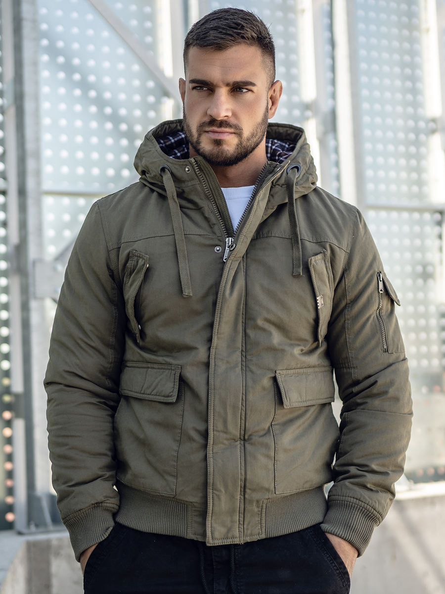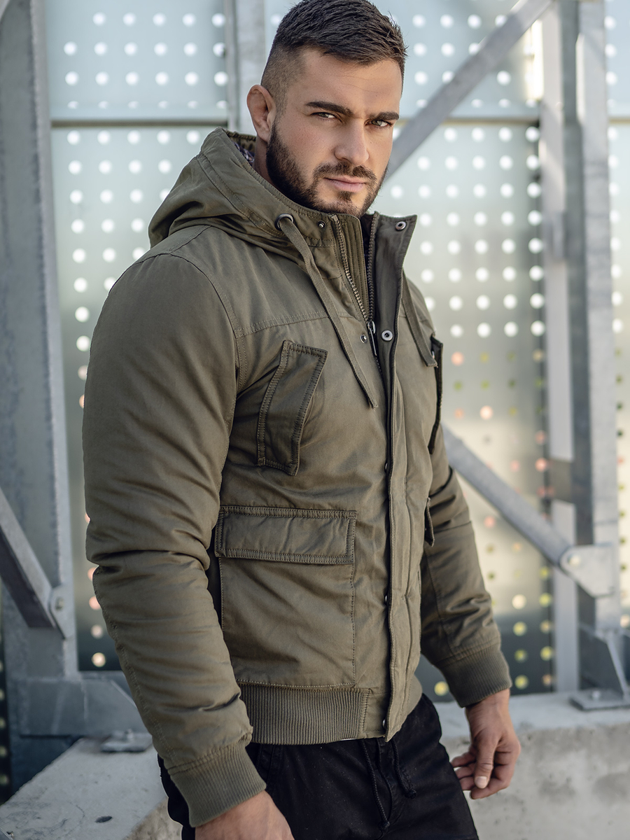 Bestseller green men's winter jacket 1890 from the Bolf collection. It's insulated and has got zipper and buttons. It has got an adjustable hood. The presented model should be worn in casual and smart casual stylings. It's plain. It provides a comfortable fit and protects against wind and cold. There are many practical pockets. Two snap-cargo and two side pockets. There are two outside snap pockets and an inside one. The sleeves and bottom are elasticated. It fits really well into the hottest trends. It is made of a soft material providing comfort. Complete your casual look with it! The jacket fits to various stylings. This model is especially often chosen by people who appreciate good quality and a fashionable look. It's a Bolf bestseller! Feel free to wear it to work, on shopping or casual events. It's stylish, comfy and warm. It is one of the must-have products in men's winter fashion. It will satisfy every fashion lover. It provides comfortable warmth. It will be your reliable companion for many years.