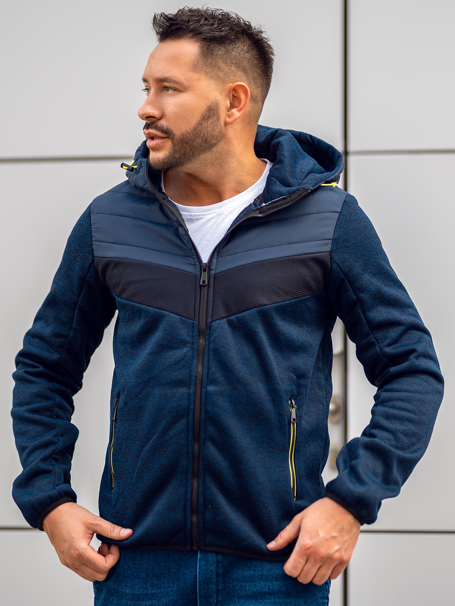 Eye-catching navy blue men's lightweight jacket KS2153 from the Bolf collection. A jacket in a classic color will add elegance to any everyday styling. It is fastened with a zipper, has an adjustable hood integrated with the collar. Two outer pockets, zippered, give it a practical character. The bottom and sleeves finished with an elastic trim make the jacket look stylish and classic. It is made of 100% polyester. Thanks to its versatility, the product can be combined with many styles. Perfect for applying during any activities - training, long autumn-winter walks or trips to the mountains. It looks great with jeans or joggers and a long sleeve top.