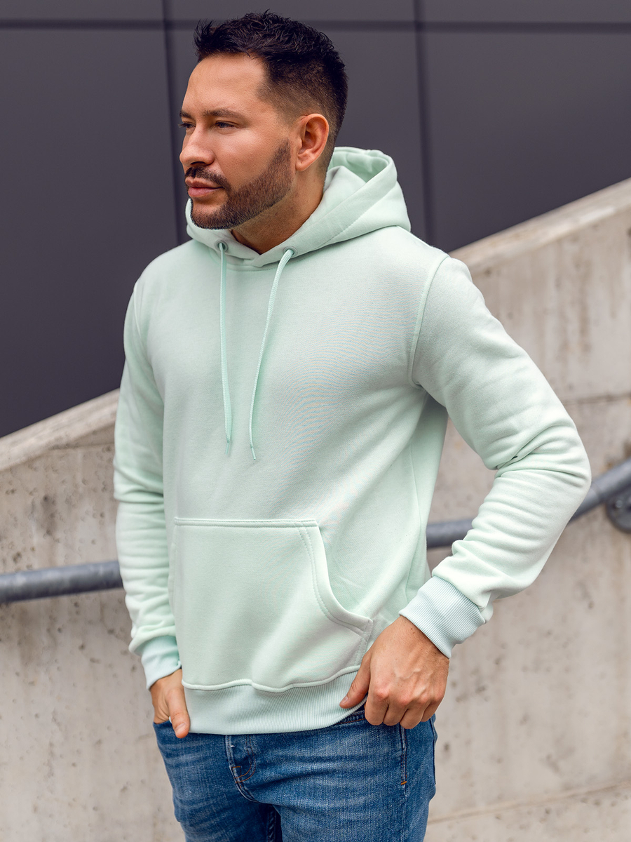 Great mint men's hoodie 2009A from the Bolf collection. It has an adjustable hood and a practical kangaroo pocket at the front. The sport look is provided by the straight design. There is a drawstring-adjustable waist and bottom. It is made of soft, smooth sweatshirt fabric in a uniform color. This model is distinguished by rich colors, it can be found in more than twenty color variants, thanks to which it easily fits into many outfits. Wear it all year long. On many occasions. Shopping? Relax? Even for a spontaneous date, it will be appropriate. The product is perfect for everyday wear, it is a must-have item in any stylish men's wardrobe. The stylish colour really boosts up the outfit. It works well with jeans, cargo trousers or joggers. Match it with sweatpants or a lightweight jacket. Wear it to the gym or on an outdoor workout. This model is often chosen by buyers. Check out this model in the reviews of influencers and IG. It attracts with great workmanship and a good price compared to the competition. The sweatshirt also has its counterpart in the women's version, which also breaks popularity records.