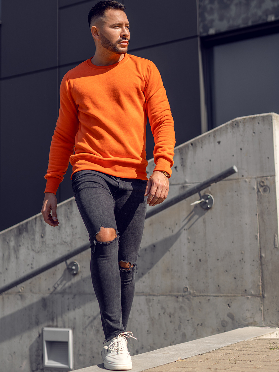 Basic orange men's sweatshirt 2001A from the Bolf collection. The presented model comes in different colours. It is designed for those who value comfort and minimalistic style. Plain, comfortable, high-quality. It's an absolute must have. The design is straight and fits to various stylings. The sleeves and bottom are elasticated. It is made of a soft high-quality breathable material. It will surely meet your expectations regardless of the colour. Choose from many beautiful colours. Wear it all year long. Going out with friends? Shopping? Relax? Feel comfy and stylish even on a date. Match it with sweatpants or shorts to get a sporty look. Feel free to wear it also with jeans or joggers and a bomber jacket or a classic leather jacket. It's our TOP 10 bestseller. We offer also a version for the ladies. Get a perfect match choosing the Bolf W01 sweatshirt. Add Bolf XW01 sweatpants to complete your styling.