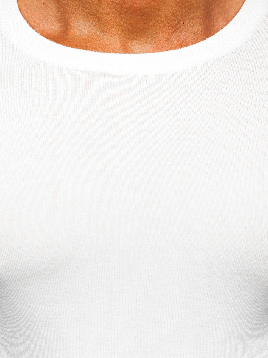 Classic white men's jumper MMB602 from the Bolf collection. It is available in several color versions. The bottom, neckline and sleeves are finished with a welt thanks to which it fits the body perfectly. The sweater will be perfect for colder days. Put it on for work, shopping or for a walk. The timeless style of the product allows you to create many fashionable styles with it. With a casual sweater you can create outfits for every occasion. Put on your T-shirt, jeans, a coat and enjoy the mega fashionable look!