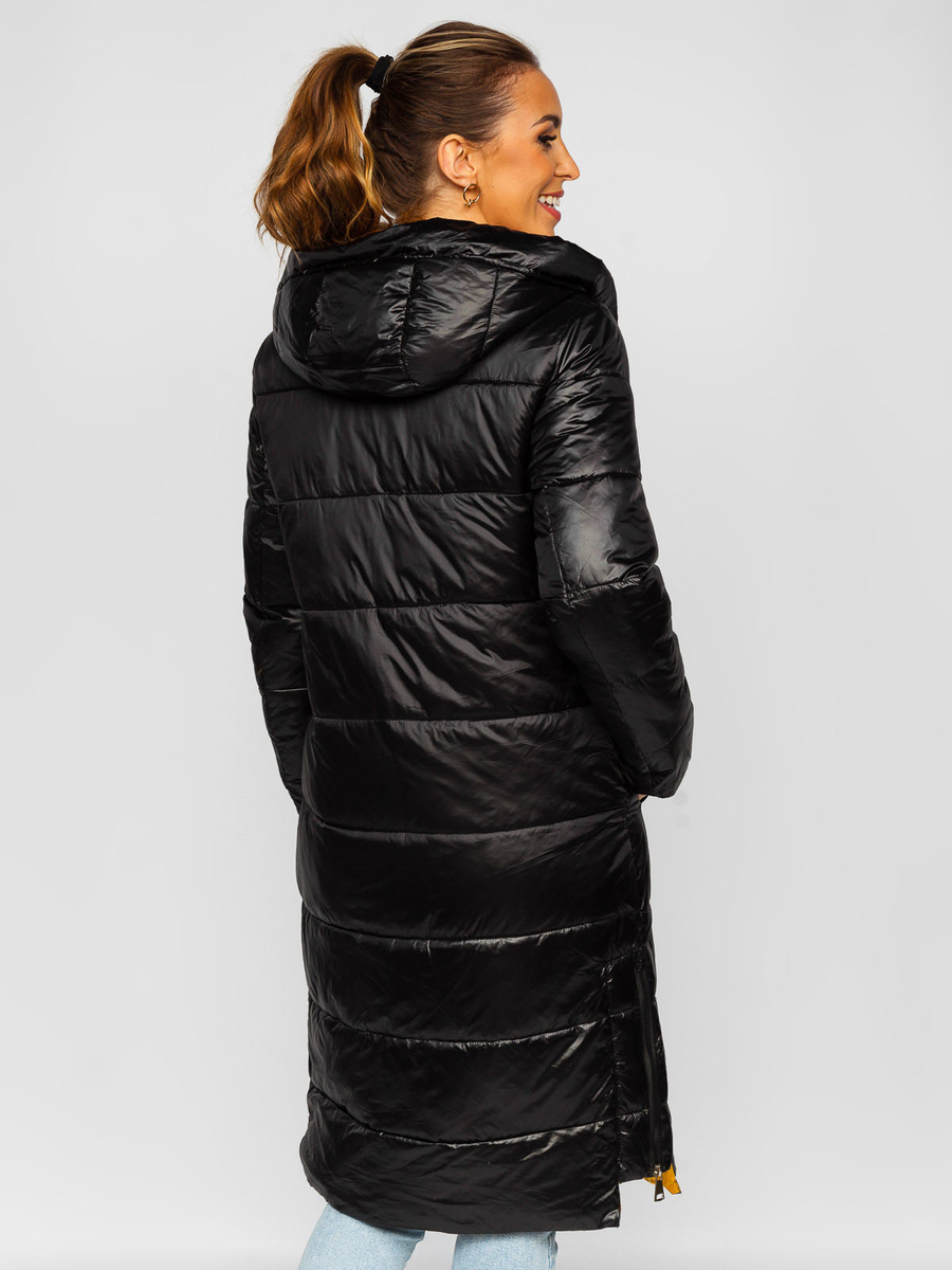 Customer feedback Women's Longline Quilted Winter Jacket with hood Black Bolf J9063
