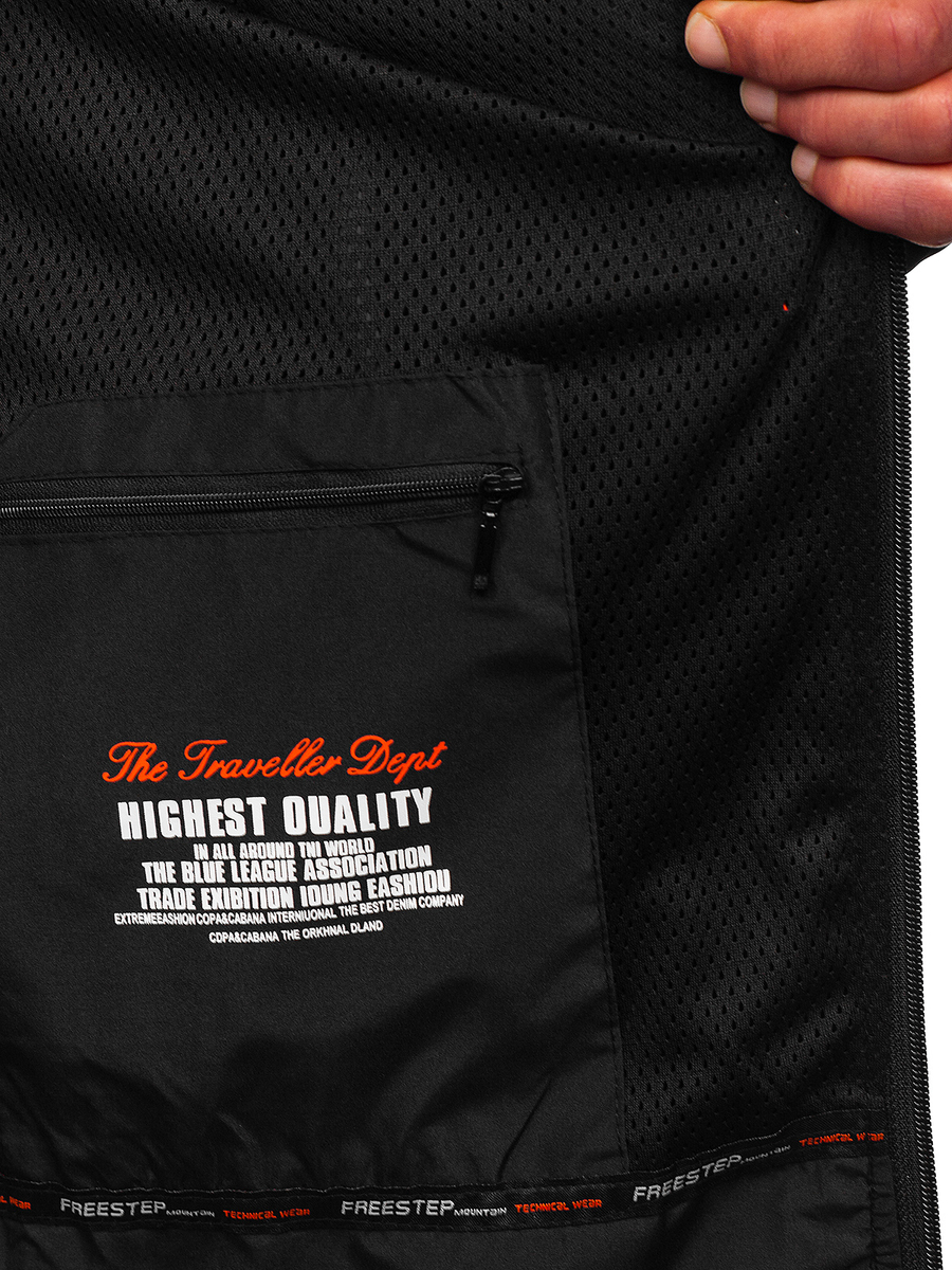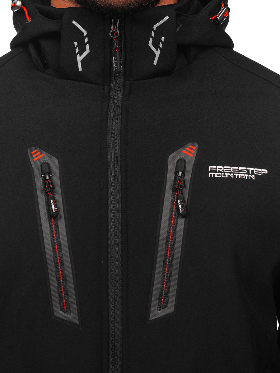 Classic black and red men's softshell jacket WX086A from the Bolf collection. It is fastened with a zipper, has a stand-up collar and an adjustable hood that can be detached or fastened with Velcro. It has practical front, side and inside pockets, all fastened with a zipper. The sleeves finished with a welt are adjustable with Velcro thanks to which they perfectly fit the body. It is made of 100% polyester. It is perfect for training, a long autumn / winter walk or a trip to the mountains. Perfect for both sweatpants, jeans and joggers.