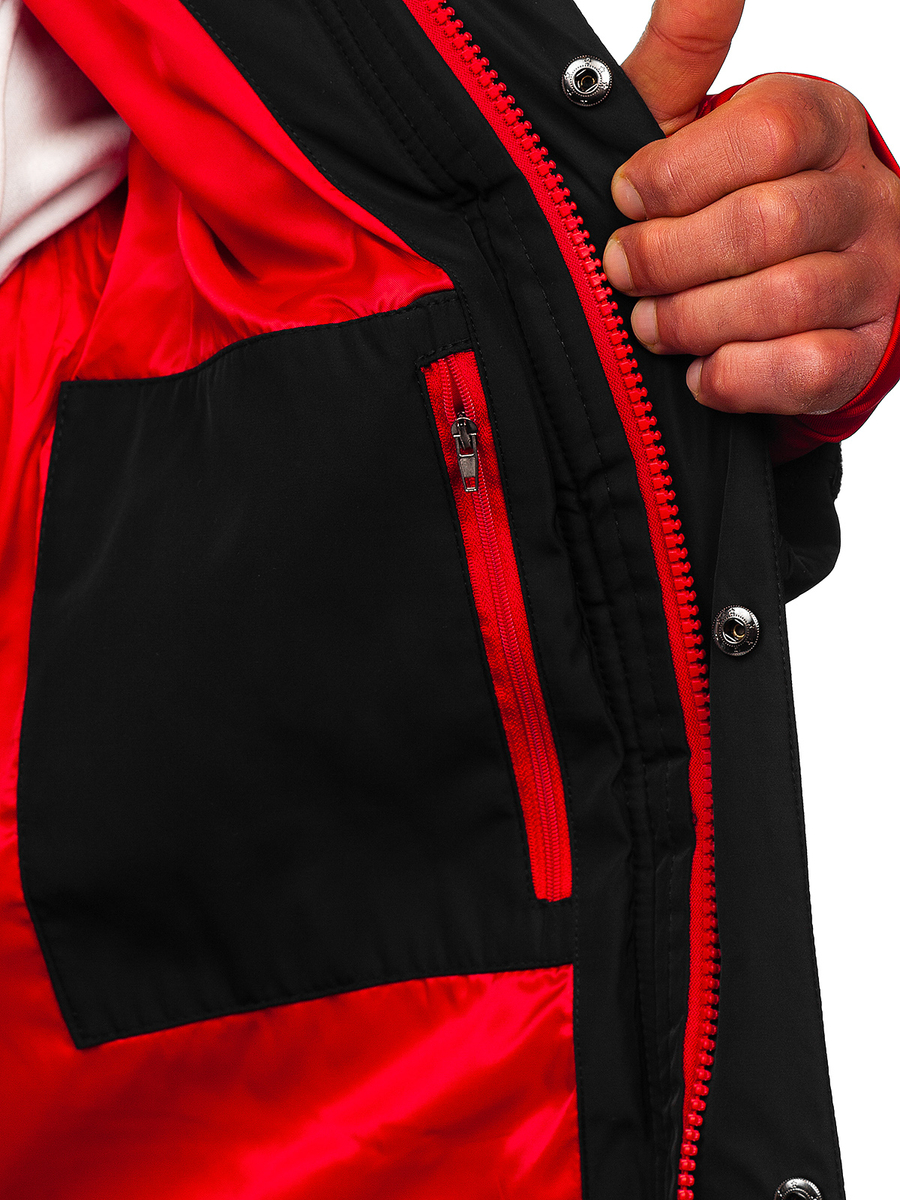 Stylish black men's quilted winter jacket 99527 from the Bolf collection. It has a zipper and snap fastening. The sleeves are adjustable with velcro, finished with a welt, thanks to which the jacket fits perfectly to the figure and protects against cold. It has a stand-up collar and a detachable and adjustable hood. The jacket has practical front pockets with zippers and outside pockets with press studs. Inside there is another zipped pocket. The jacket is made of high-quality materials, which makes it very comfortable and pleasant to the touch. Consists of 100% polyester. Match it with jeans from our collection!