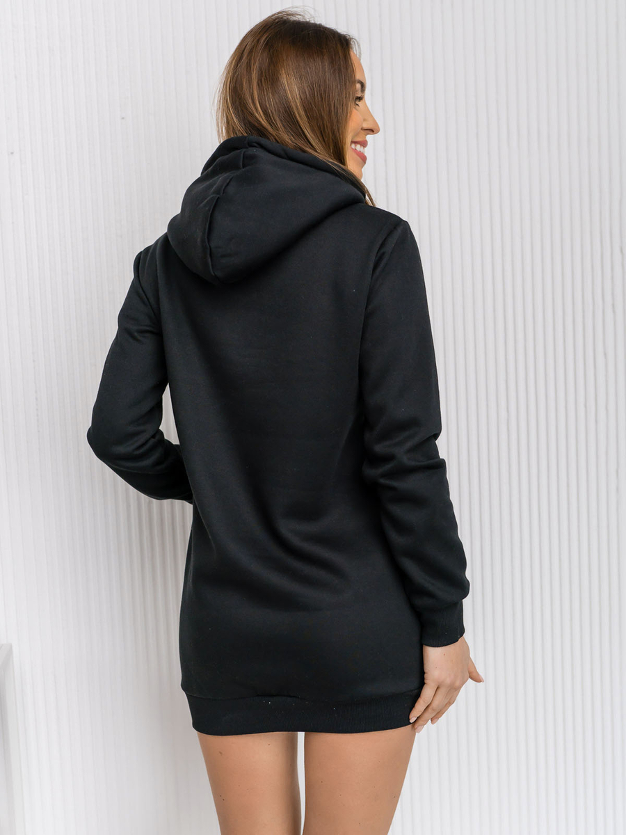 Must have black women's longline hoodie YS10003-A from the Bolf collection. The fashionable color will allow you to match the sweatshirt to any styling. The sweatshirt is pulled over the head. It has a kangaroo pocket in which you can keep all the necessary small items. The bottom and sleeves of the product are finished with elastic cuffs. The hood perfectly protects against rain, it can be adjusted with cuffs, which also provides excellent protection against the cold. The jacket is a universal product, it will perfectly fit into the current trends in autumn fashion. The versatility of the product allows you to wear it also in other seasons, it will also look great in summer and spring stylizations.The product is intended for fans of a sporty style. It will be perfect for an autumn / winter walk, a city trip or jogging. It is warm and comfortable, and will work in even the most demanding weather conditions. It is available in several color variants, which means that it can be combined with any styling. The product is a great idea for a birthday or Christmas gift. The undoubted advantage of the product is the value for money. The sweatshirt is comfortable and loose, it will perfectly match sports outfits. The sweatshirt has a fashionable cut. It consists of 65% cotton and 35% polyester, which makes it flexible and comfortable. Thanks to this, it is also a perfect choice for jogging and training outdoors or in the gym. This type of product is a perfect complement to any women's wardrobe. It can be combined with many sports and casual styles. The variety of colors makes it perfect for any outfit. Thanks to its simplicity and versatility, the sweatshirt is timeless and can be worn for many seasons. It is an ideal gift option because it will appeal to the taste of every woman who values elegance and comfort. It can be perfectly combined with jeans or leggings. It looks well also with a winter jacket.