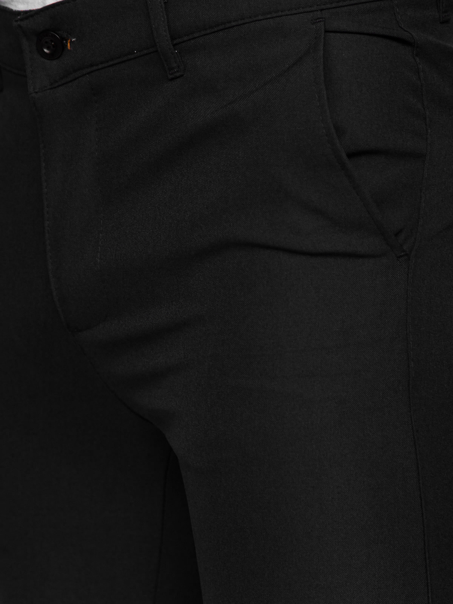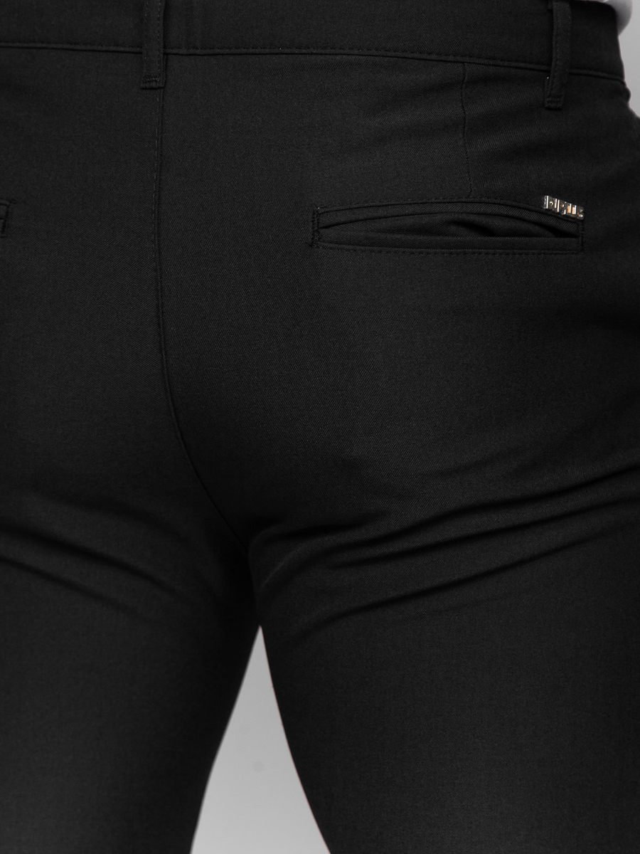 Great black men's cotton pants 0031 from the Bolf collection. Trousers with a classic long leg are fastened with a zipper and a button. This model has practical pockets in which you can put the most important things and documents. Two are located at the back and two at the front. They are made of the highest quality materials which makes them extremely comfortable and pleasant to the touch. Chinos are universal, comfortable, practical and always look good. Combine them with a leather jacket and a T-shirt and you will get styles perfect for almost any occasion.