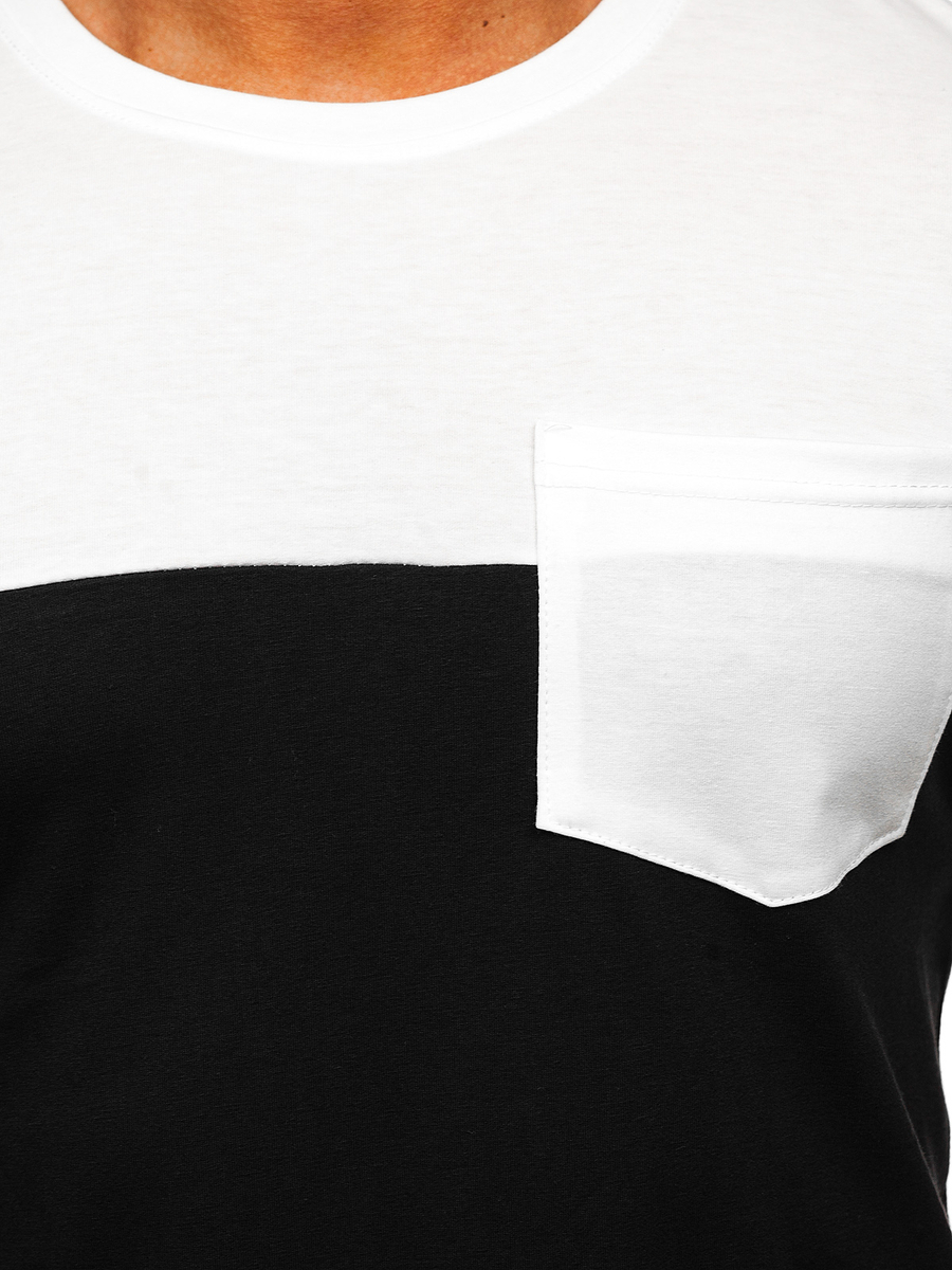Expressive white and black men's T-shirt with a pocket 8T91 from the Bolf collection. It was made of high-quality materials, which guarantees not only durability, but also wearing comfort. The black and white colors give it a universal character that fits perfectly with various stylizations. An additional element of this T-shirt is a practical pocket on the chest. The pocket not only adds a stylish touch, but also provides space for storing small items. A T-shirt will look great with jeans or cargo pants.