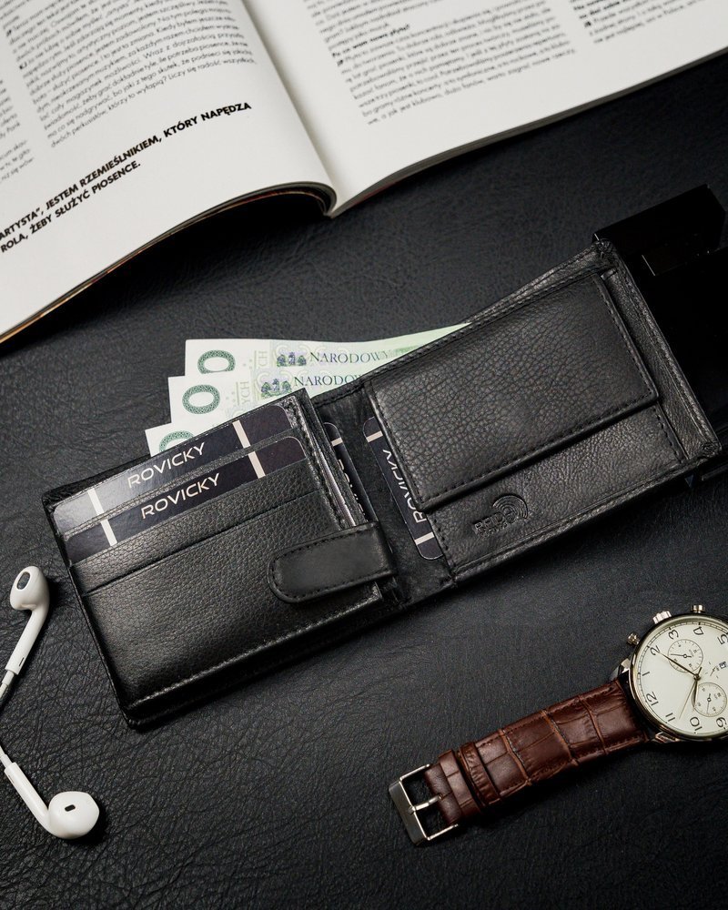 - secure - equipped with RFID technology which protects the wallet against thieves using a card scanner