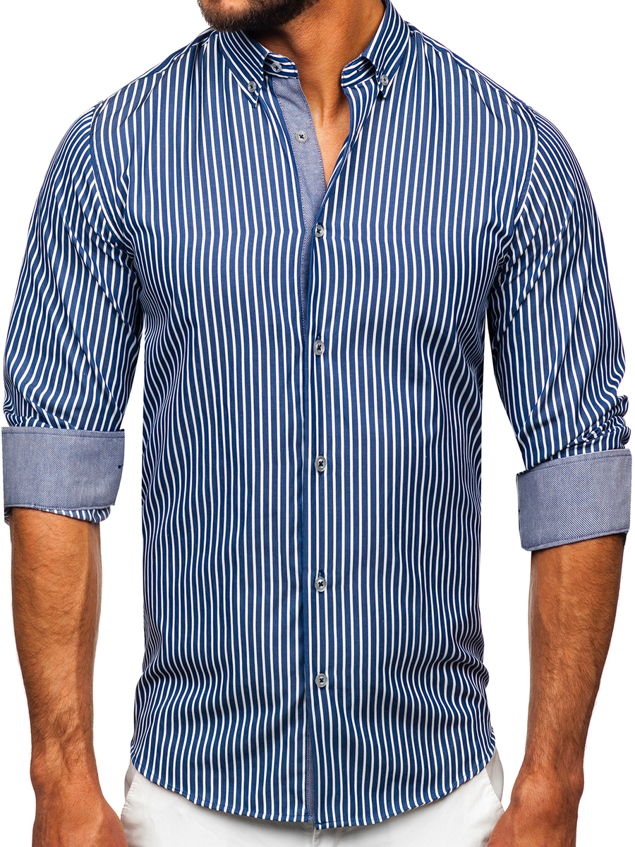 Customer feedback Men's Striped Long Sleeve Shirt Navy blue Bolf Bolf 22730