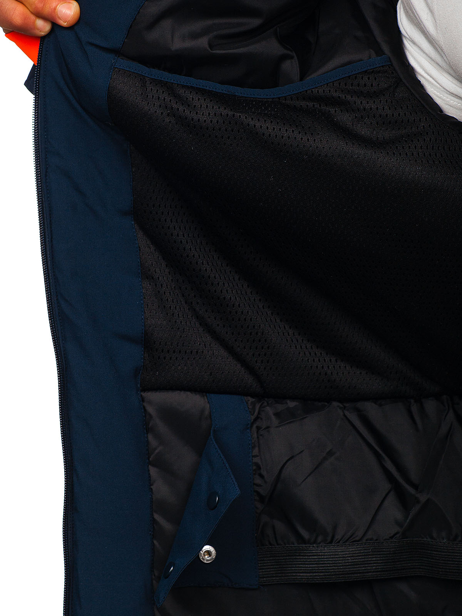 Classic navy blue men's winter sport jacket HH011 from the Bolf collection. A winter jacket with a hood will suit every taste. The product is fastened with a zipper and a zipper. The hood is removable and has a 2D adjustment. A high collar with a zipper will provide excellent protection against the cold. A practical element of the jacket are pockets: two side zippered, the chest also zippered and two inside pockets, one fastened with Velcro. The sleeves are adjustable with Velcro, from the inside finished with an elastic welt with a thumb hole. The product is universal, it will be perfect for training, walking, going out into the city or hiking in the mountains. It is made of 94% polyester and 6% elastane. It will look great with jeans or sweatpants.