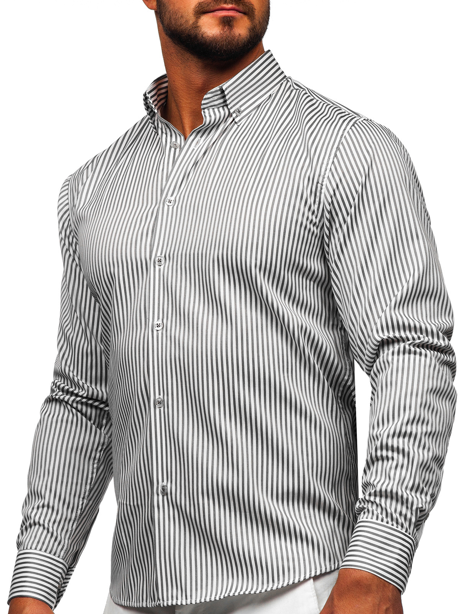 Customer feedback Men's Striped Long Sleeve Shirt Graphite Bolf 22731