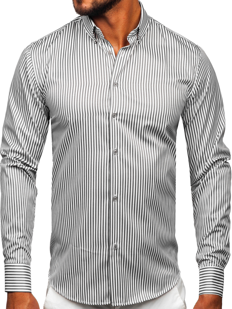 Must have striped long sleeve shirt 22731 from the Bolf collection. Fastened with buttons, with adjustable cuffs. Made of 80% cotton and 20% polyester, which makes it very pleasant to the touch and comfortable. It perfectly slims the silhouette and accentuates the shoulders. This elegant shirt is suitable for official occasions, where it will be fantastic in combination with a jacket, but also for more casual styling, for a date or a birthday party. Available in eleven colors.