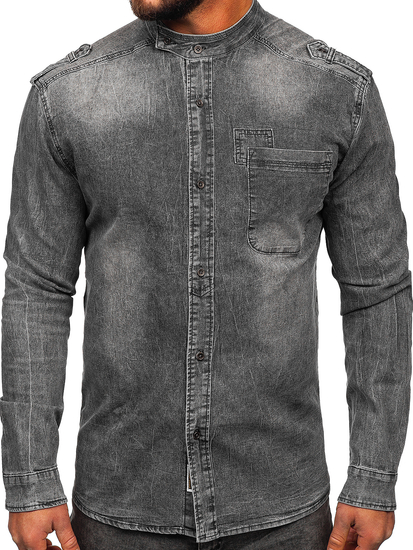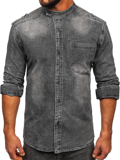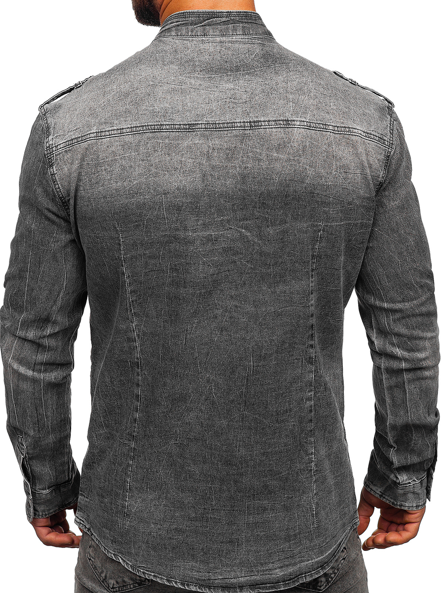 Must have graphite men's long sleeve denim shirt MC713G from the Bolf collection. It will look fantastic with a biker jacket and jeans. Fastened with buttons, with a stand-up collar and adjustable cuffs. The combination of cotton and elastane ensures adequate elasticity and delicacy of the material. Shading on the entire surface gives it a fashionable, youthful look. It will be suitable for everyday, going out with friends or a date.