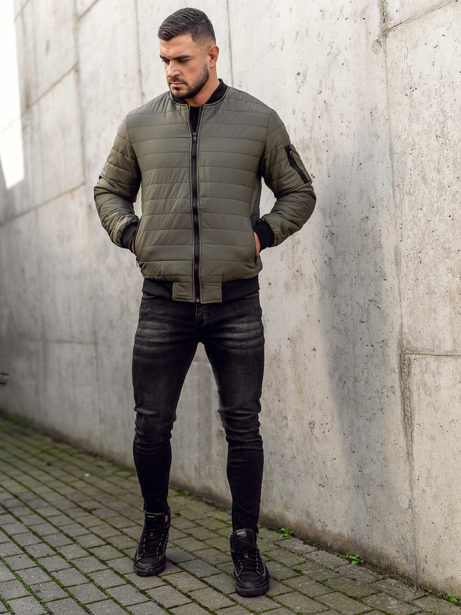 Khaki men's lightweight bomber jacket MY-02A from the Bolf collection. It is equipped with zip fastening. The presented model should be worn in casual and smart casual stylings. There is a stand up collar. It has got two zip pockets and an additional one on the sleeve. The sleeves and bottom are contrasting and elasticated. It's made of high-quality materials and will be a reliable companion for many years. It fits into the newest trends and is very soft. The presented model works great in early spring and late autumn. The colour allows to match it with various clothes. It is designed for those who value comfort and style. The bomber jacket is carefully-designed and provides a comfortable fit. The simple cut makes it fit into casual and urban stylings. Match it with jeans, a long sleeve top, joggers and a T-shirt or chinos and a shirt. It goes well also with a hoodie, a jumper or a turtleneck sweater. The bomber jacket MY-01 is a bestseller in Bolf shop. It's popularity grwos higher and higher. Lots of men like it as the jacket they wear every day. It's universal and affordable. Feel free to wear it to work, on shopping or casual events. You can take it on various occasions. It's lightweight, soft and takes little space.