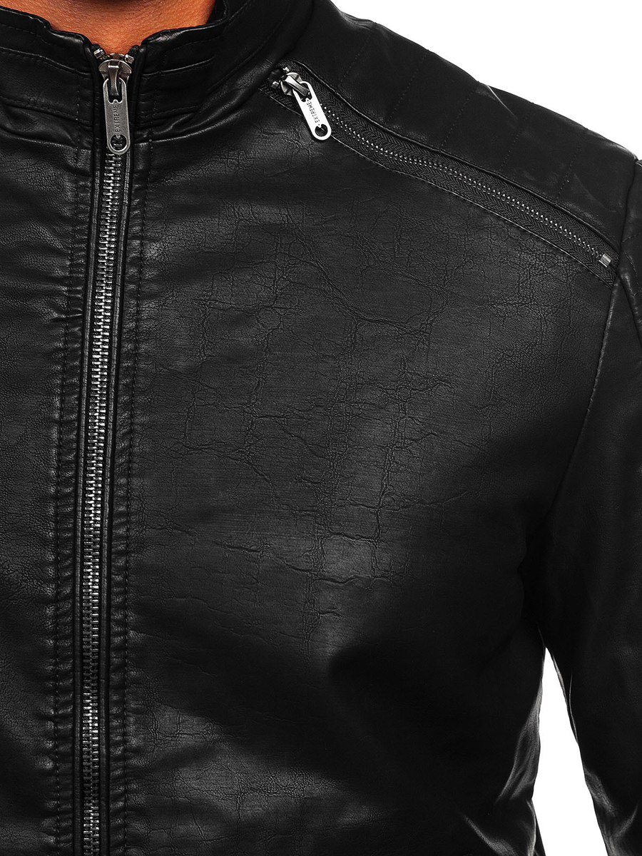 Classic black men's leather jacket EX229 from the Bolf collection. Made of the highest quality materials, it is not only durable, but also lightweight and comfortable. The black color gives it a timeless character, and at the same time is an excellent base for a variety of styling, both casual and more formal. Pair it with a T-shirt and slim fit pants for a trendy everyday look.