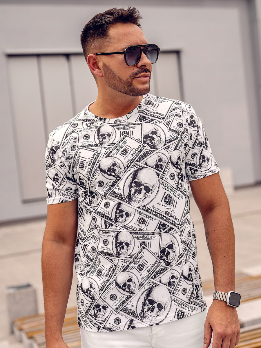 Eye-catching white men's printed T-shirt 14907A from the Bolf collection. The original print will make you eye-catching and make you look unique. The product has a round neckline and is made of 100% cotton, which makes it pleasant to the touch and elastic. The T-shirt is intended for fans of everyday outfits. It will look perfect with jeans, chinos or joggers.