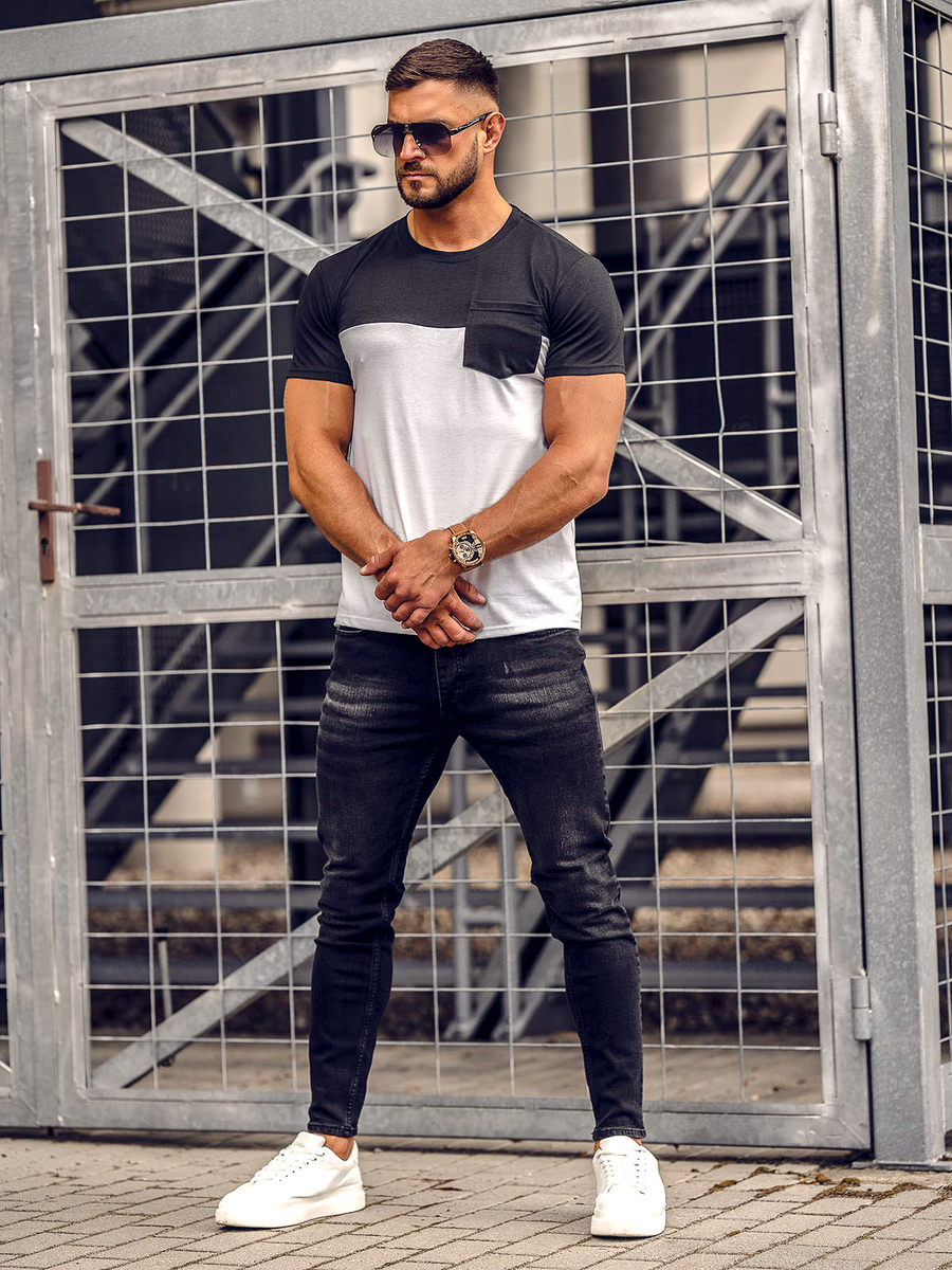 Expressive black and white men's T-shirt with a pocket 8T91A from the Bolf collection. It was made of high-quality materials, which guarantees not only durability, but also wearing comfort. Black and white colors give it a universal character that fits perfectly with various stylizations. An additional element of this T-shirt is a practical pocket on the chest. The pocket not only adds a stylish touch, but also provides space for storing small items. A T-shirt will look great with jeans or cargo pants.
