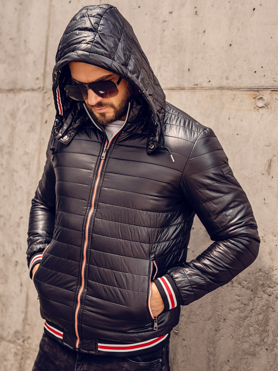 Eye-catching black men's lightweight quilted jacket 6191A from the Bolf collection. There are quiltings on the whole. There is a zip fastening and a stand up collar. It is equipped with ribbed sleeves, hood and bottom. There are two outside zip pockets. It has got a detachable and adjustable hood. It is designed in sport style - perfect for every day. Feel free to use it on a walk, meeting with friends, a night out or shopping. Match it with joggers and a T-shirt or with jeans and a sweater, as well as with a sweatshirt.