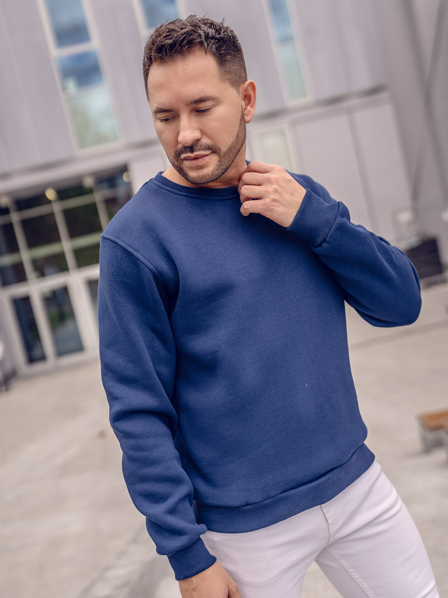 Basic indigo men's sweatshirt 2001A from the Bolf collection. The presented model comes in different colours. It is designed for those who value comfort and minimalistic style. Plain, comfortable, high-quality. It's an absolute must have. The design is straight and fits to various stylings. The sleeves and bottom are elasticated. It is made of a soft high-quality breathable material.
