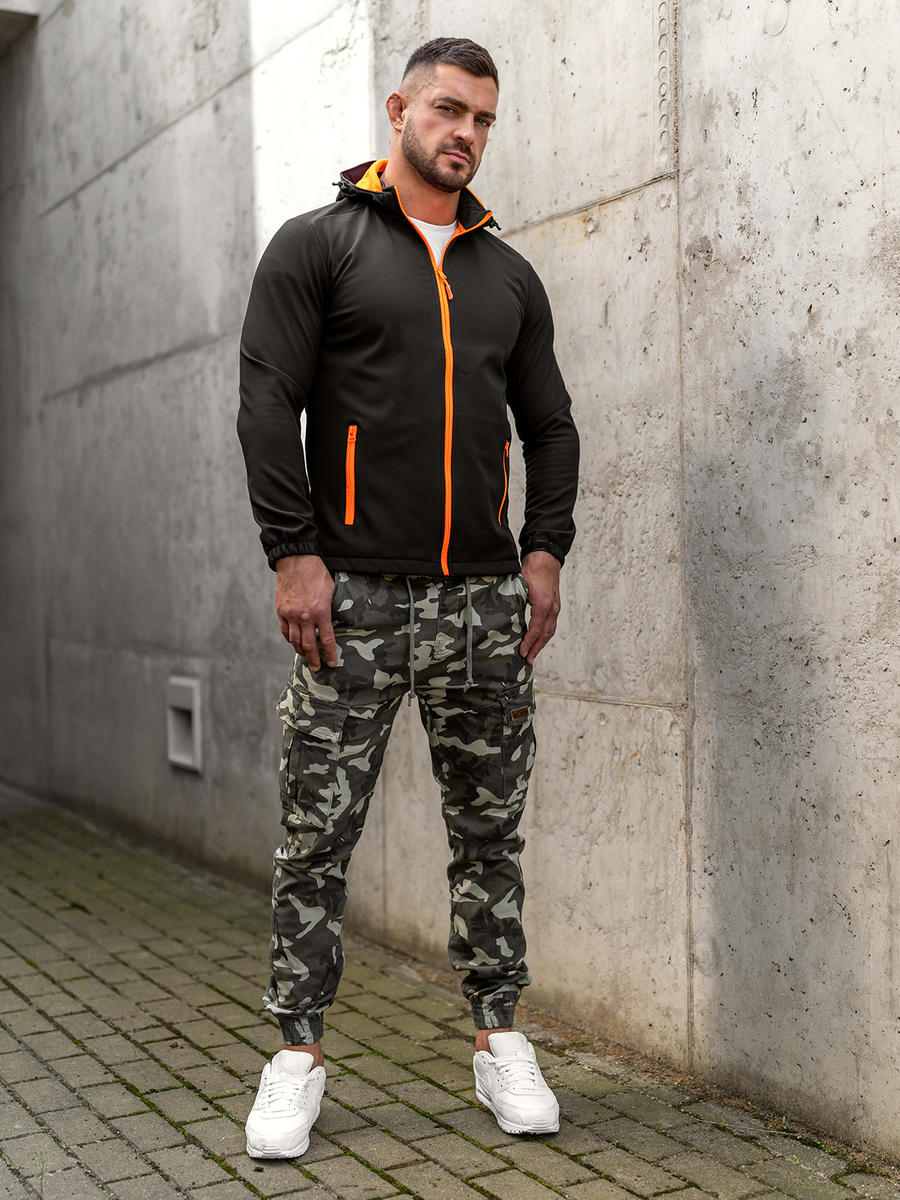 Great black and orange men's lightweight softshell jacket HH017A from the Bolf collection. The product is fastened with a zipper. It has a detachable hood that perfectly protects against cold and wind. A softshell jacket is a great choice for a walk, meeting with friends or a trip to the city. The product has a stand-up collar and 2D hood adjustment. A functional element are two outer pockets with zippers. Sleeves with a welt are adjustable with Velcro. The bottom of the jacket is straight. The product is intended for fans of sports styling. Perfect for meetings with friends, walks or trips to the city. It is made of 94% polyester and 6% elastane. It will look great with jeans or joggers.