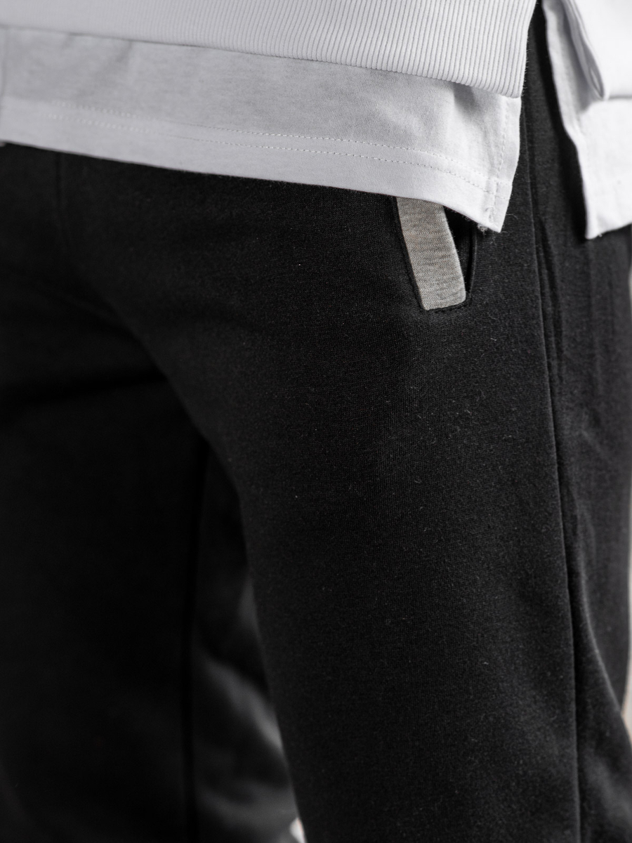 Classic black men's sweatpants AK13A-1 from the Bolf collection. Made of soft material, the pants provide unrivaled wearing comfort. An elastic, adjustable waist and fitted legs make them fit perfectly to the figure without restricting movement. The black color of the trousers gives them an elegant character that perfectly suits both casual and more formal styles. You can pair them with a shirt and sneakers for a casual look.