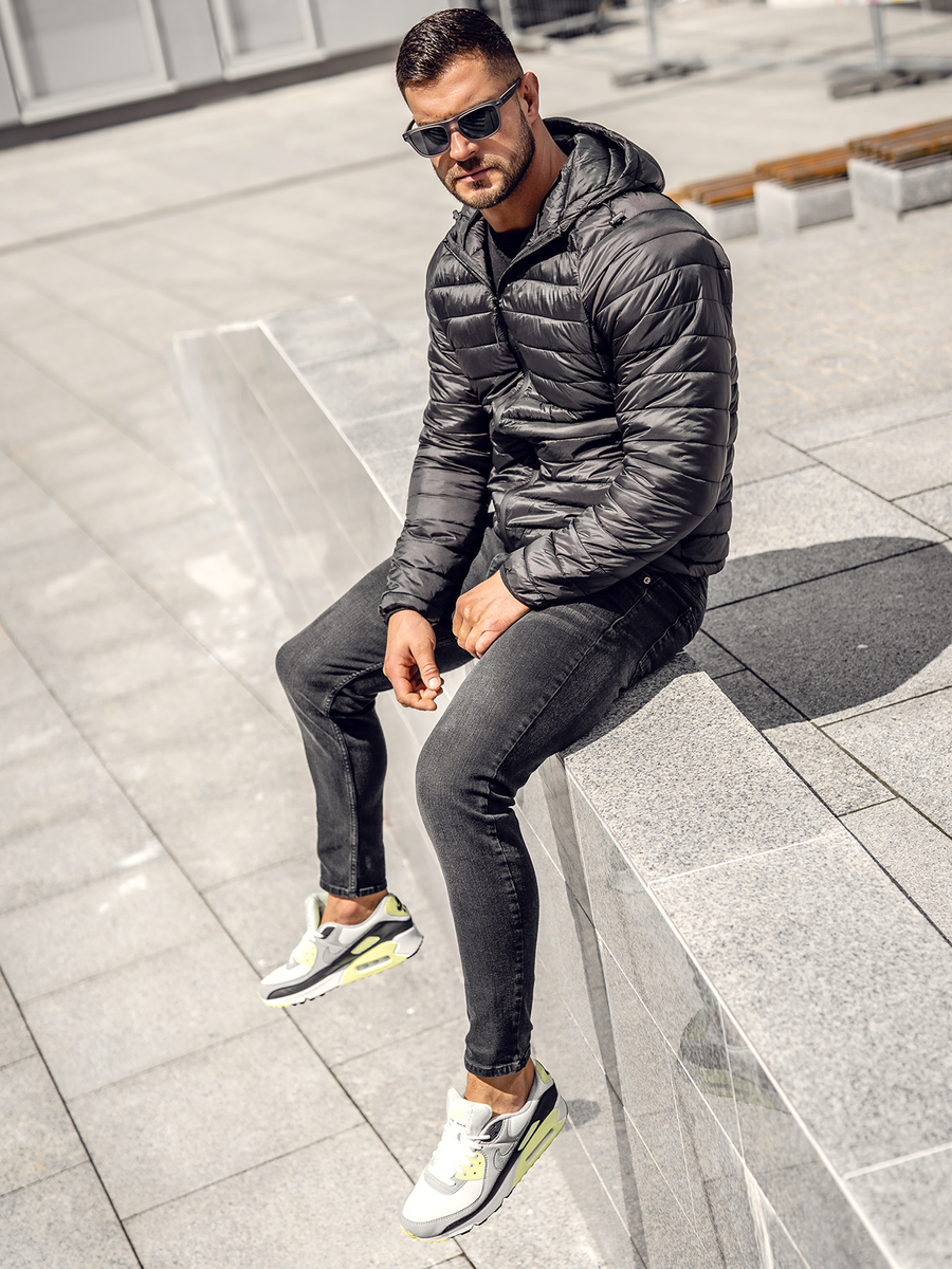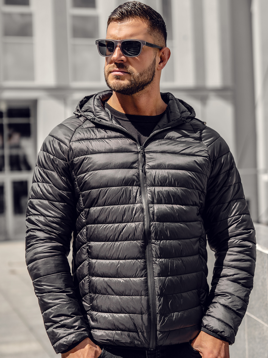 Eye-catching black men's quilted lightweight jacket 58M13021A from the Bolf collection - perfect on cold days. Mega practical jacket, fastened with a zipper has an adjustable hood that will protect you from wind and cold. The product has two outer pockets with zippers. A quilted jacket will be perfect for everyday styling. The highest quality product provides you with comfort and warmth on cooler days. Compose your fashionable look with a T-shirt and jeans. For a comfortable and sporty outfit, pair a jacket with sweatpants and a sweatshirt.