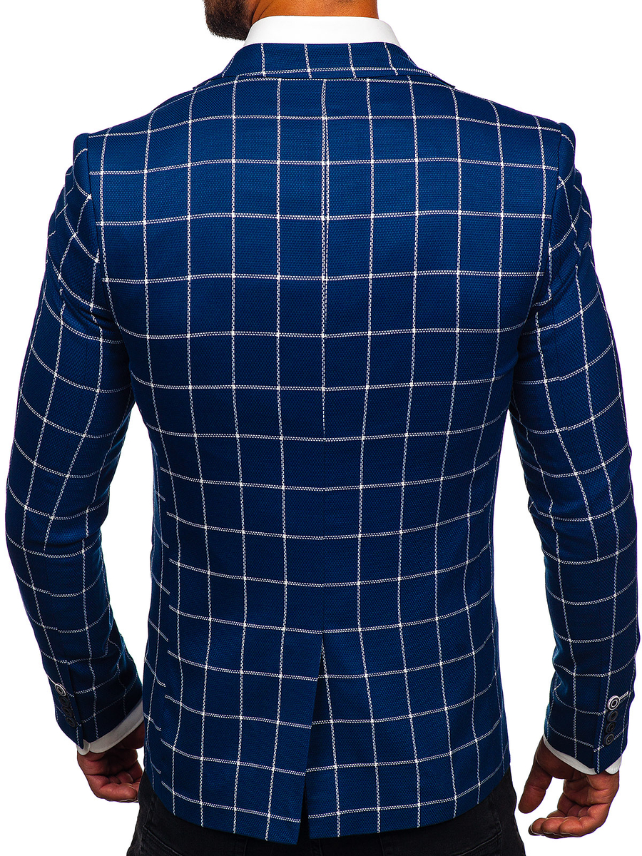 Customer feedback Men's Casual Checkered Blazer Navy Blue Bolf 003